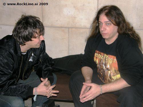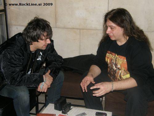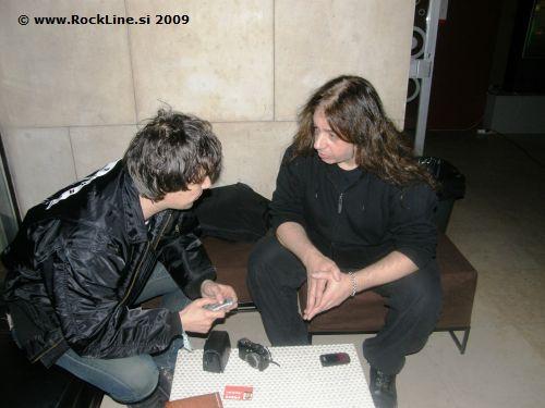 Mine kakih dvajset minut in prikaže se simpatični kitarist, nas prijazno odpelje do "cateringa" v prvo nadstropje ter nam naloži, da se naj od tem ne premaknemo niti za pedenj levo ali desno. Ob tem nas ponudi s postrežbo pijače in jedače za mizo, kjer so se gostili v izmenah Thilo Hermann in Stefan Arnold iz skupine Grave Digger, kot tudi člani predskupin Taletellers in Alestorm ter doda naj mu damo še kakih 10. minut, da oglasi svoje kitare.