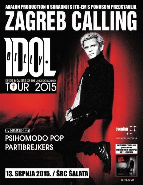 Billy Idol bo s svojim nastopom v Zagrebu, dne 13.07.2015, odprl program prvega uradnega Zagreb Calling festivala, turneja pa bo posvečena promociji aktualnega studijskega albuma z naslovom "Kings And Queens Of The Underground".