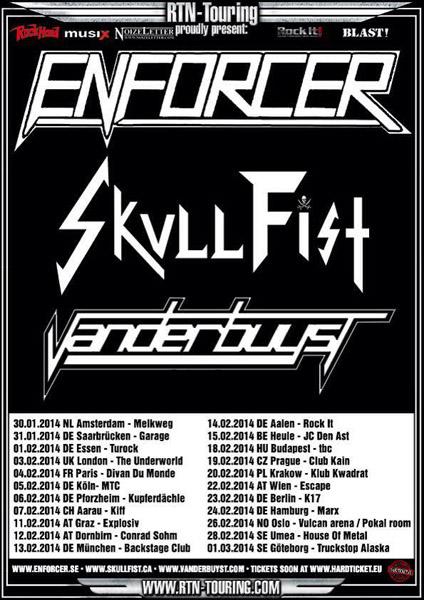 Na skupno evropsko turnejo se odpravljajo tri mlade skupine, ki obujajo spomine na zlato ero heavy metala: Enforcer, Skull Fist in Vanderbuyst. S turnejo bodo pričeli konec januarja v Amsterdamu, v sklopu več kot enomesečnega pohajkovanja pa se bodo nam najbliže ustavili sredi februarja v Gradcu na avstrijskem Štajerskem.