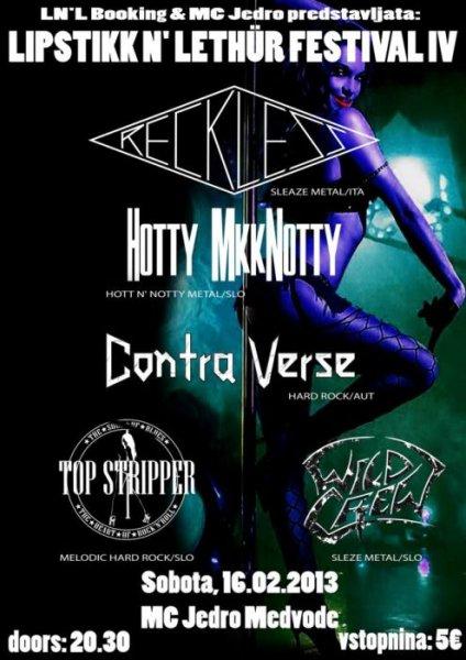 Vesela novica za vse hard rockerje, heavy metalce in "party animals"-ponovno se vrača Lipstikk N'Leathür , edini slovenski hard/glam/sleaze festival pri nas. Tokratna edicija se bo kot lani odvila v MC Jedru v Medvodah, na koledarju pa z rdečo šminko obkrožite datum 16.2.2013.