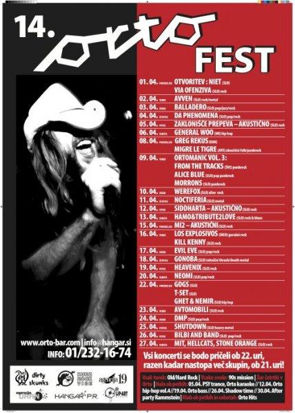 Vsako leto aprila je Ljubljana bogatejša za glasbeni dogodek, ki spodbuja delovanje klubske scene in bogati kulturni utrip prestolnice. Orto bar tokrat že 14. leto zapored pripravlja edini mesečni klubski festival Orto Fest. Ta bo spet ponudil pester koncertni program in nastope tako uveljavljenih kot prebijajočih se kakovostnih glasbenih kolektivov. Skupno se bo v aprilu v Ortu tako zgodilo preko 30 koncertov.