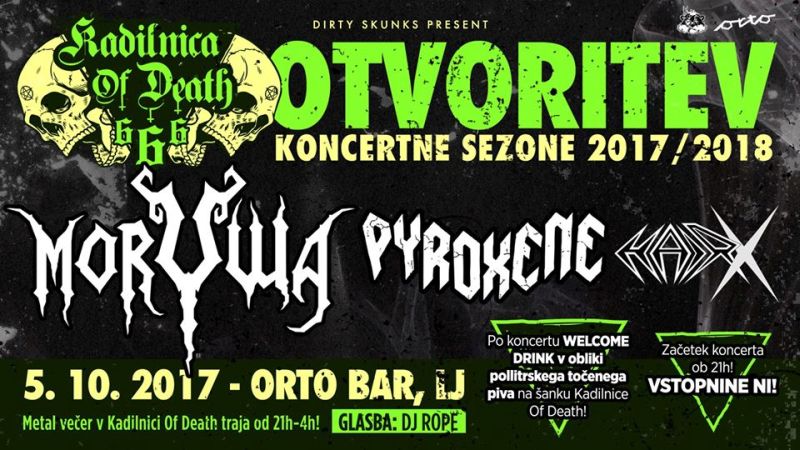 Kadilnica of Death: Otvoritev sezone 2017/2018 s koncertom skupin MORYWA, PYROXENE in HAIRX