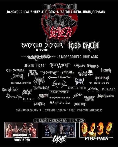 Organizator prihodnje izdaje tradicionalnega nemškega festivala Bang Your Head!!!, ki bo potekal v mestu Balingen, med 14.07. in 16.07.2016, je potrdil še dve imeni nastopajočih, prav tako pa je sklenjen nabor skupin za warm up show!