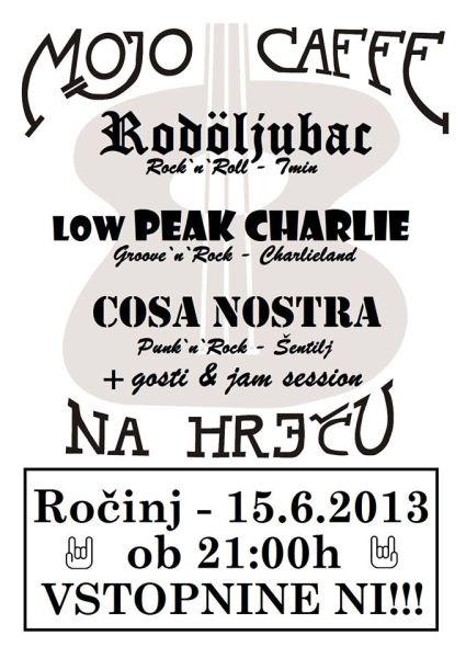 Nastopajo: Rodoljubac (z novim kuharjem po stari recepturi - Tmin), Low Peak Charlie (Charlieland) in Cosa Nostra (Sladki vrh/Šentilj) + gosti & jam.