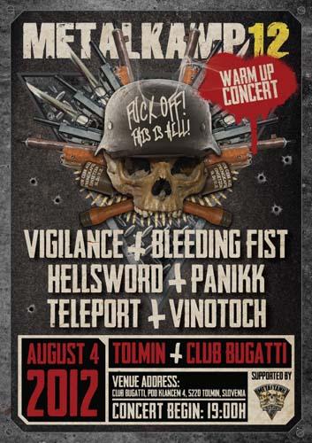 4. avgusta 2012 oziroma dan pred festivalom Metal Camp 2012, se bo v klubu Bugatti v Tolminu zgodil Metal Kamp Warm up na katerem bodo nastopili Vigilance, Hellsword, Bleeding Fist, Panikk, Teleport in Vinotoch. Na dogodku se bo streglo "happy hour" pijačo in jedačo po akcijskih cenah. Vstopnine ne bo!