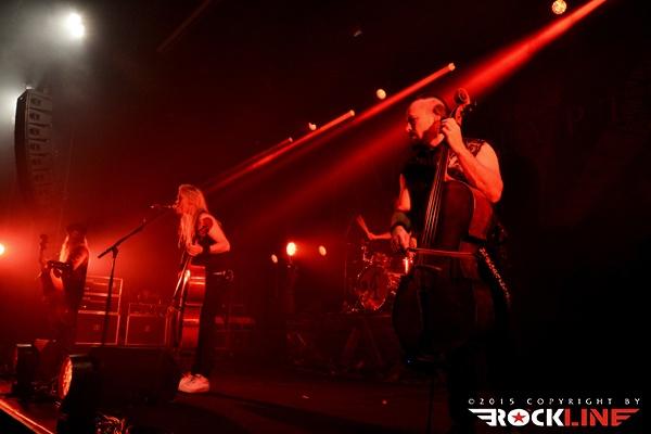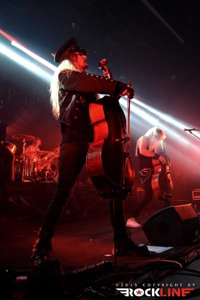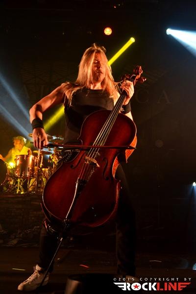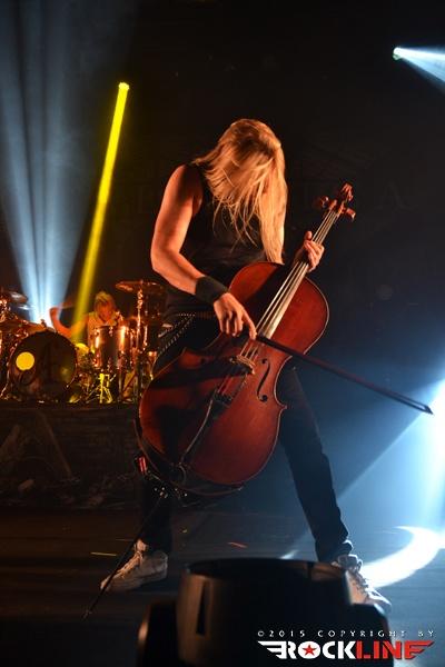 In kako se ta sprememba obnese? Torej, ne najbolje. Udarni trio skupine je seveda izvrstno uigran s klasično glasbeno izobrazbo in več kot dvema dekadama nastopanja. Dejansko ne bi bilo pripomb, če ne bi, vsaj pri starejših skladbah pogrešal neko dodatno globino, ki je manjkala zavoljo izgube četrtega čelista. Franky Perez svoj nastop ni začel suvereno in stanje se ni izboljšalo niti do konca koncerta. Pri tako kvalitetnih glasbenikih je kar težko verjetno, da so si dopustili izbiro tako povprečnega vokalista. Vseeno sem mnenja, da bi bilo bolje, da njegove linije »odpoje« četrti čelo. A kaj moremo – publika je kljub temu norela in ni bilo videti, da bi jih ta pomankljivost pretirano motila – vsaj večine ne. Bobnar Mikko je stalen član zasedbe že deset let in njegovemu mojstrstvu za bobni ne gre oporekati. A uvedba bobnov je bila dvorezen meč, ki se je izkazala tudi na tokratnem koncertu. Medtem, ko izvrstno ritmično poudarjajo ta miks klasičnih instrumentov in metal glasbe, pa se vse prevečkrat zgodi, da popolnoma preglasijo nežnejše dele skladb, kjer drugače čelo s svojim žametno globokim glasom prevladuje.