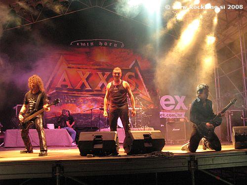 Axxis so izdali lanske jeseni nov studijski album "Doom Of Destiny". Svoje set liste pa niso posiljevali z repertoarjem s tega albuma, kot bi bilo mogoče pričakovati, zato so iz njega uvrstili vsega tri skladbe v skupno 16. točk. Možje imajo v septembru "zabukiranih" nekaj pozno poletnih festivalskih nastopov, ki skrbijo za to, da se ime Axxis pojavlja na prizoriščih, po doživetem pred koncertu, ko sem se srečal s člani skupine, pa je občutek potrdil tudi to, da so pobje neverjetno nabiti s pozitivno energijo, sproščeni in da prav uživajo, ko so znova skupaj na turneji. Čutilo se je, da fantje radi raziskujejo "eksotične" dežele, kjer doslej še niso igrali. Možje to pot niso segli preveč globoko v svoj proračunski žep ter odrinili na pot brez dodatnih ženskih spremljevalnih vokalov, le z osnovno opremo (instrumenti). Vendar pa jim je nekaj tega denarja iz mošnje vseeno odtegnil najeti plačanec Dirk Brand, ki skupino na koncertnih nastopih začasno rešuje na poziciji bobnov, dokler pač Axxis ne najdejo permanentne zamenjave za "pobeglega" Andre Hilgersa, ki po novem igra pri Nemcih Rage.