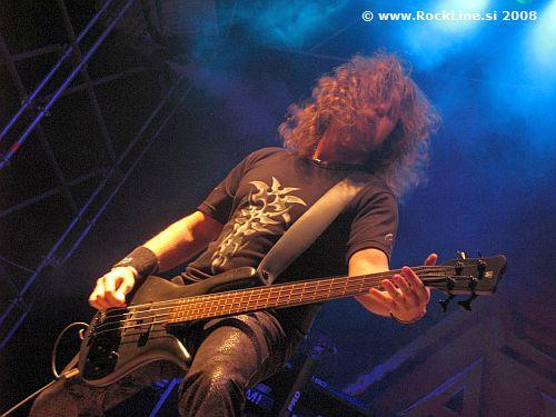Ura je krepko odbila preko enajste ponoči, ko smo naposled zaslišali uvodno Voices Of Destiny, ki se je logično prelil v Doom Of Destiny (Arabia) iz istoimenskega aktualnega studijskega albuma skupine. Možje posedujejo izjemno rutino in izkušnje, zato so od prvega do zadnjega trenutka koncerta ponudili izredno samozavest in odrsko nepopustljivost, ki je uspešno vijugala med popolno zbranostjo in šegavimi dodatki odrske igre, s katero je skupina podžigala ljudstvo pod odrom. Možje so sestavili set listo, ki je pridno zaobjela njihov glasbeni opus, s težiščem hitov v drugi polovici. V prvem delu koncerta so lepo presenetili s skladbo Little War, edino iz njihovega tretjega studijskega albuma "The Big Thrill" (1993), v skladbo Bloodangel ("Doom Of Destiny", 2007), pa so vključili bobnarsko solažo in tako omogočili Brandu, da se kanček razmahne, čeprav je precej nezanimiva solaža koristila predvsem preostalim članom, da si kanček predahnejo. Bernhard Weiss, edini originalni član zasedbe današnjih Axxis in mož, ki drži skupino pri življenju, basist Rolf Schomaker in sveži , odlični kitarist, ki se je skupini priključil pred albumom "Doom Of Destiny", Marco Wriedt, so nenehno skrbeli za visoko energičen nastop, velik oder pa jim je omogočal, da se konkretno razletijo preko njega. Sredina regularnega dela je bila posebej zanimiva, ko se je skupina odločila, da preobleče dva klasična komada Fire And Ice ("Kingdom Of The Night", 1989) in Touch the Rainbow ("Axxis II.", 1990) v akustiko, skladbi Fire And Ice pa ob tem doda celo rahlo latino ritmično podlago. Takrat je Bernhard priklical na oder deklino, ki jo je postavil v vlogo spremljevalne vokalistke, kar je v zadnjih časih navada novih Axxis. Punca se ni pustila predolgo prositi in pridno tolkla ob tamburin, kot ji je naročil Bernhard. Dekle bi kar ostalo na odru, če je Bernie ne bi diplomatsko in prijazno odslovil iz odra po koncu Touch The Rainbow.