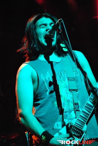 Še bolj vroče pa je postalo v nadaljevanju, tokrat si je bilo končno tudi predskupino več kot vredno ogledati. Iced Earth na turneji namreč spremljajo, kot jih je označil Stu Block, tisti nori mulci iz Warbringer. Losangeleška thrash metal zasedba ima za seboj že štiri studijske albume, nešteto turnej, niso pa tudi neznanka naših odrov, pri nas so nastopili že večkrat. Verjetno najboljšo moderno thrash metal zasedbo pa je bilo pri nas lepo končno videti tudi v veliki dvorani. Warbringer so to priložnost, kot vedno, izkoristili za totalno vojno thrash metala, Šiško pa zasuli z napalmom ostro izrezljanih rifov in šakalsko tulečih ter izprijeno brutalnih vokalov Johna Kevilla. Čeprav je na tokratni turneji Kevill edini predstavnik originalnih članov benda (kitarist John Laux je ostal doma) se to bendu niti malo ni poznalo, oder so zavzeli silovito in brezkompromisno. Lauxa je na kitari prepričljivo zamenjal živi in energični Balmore Lemus (Exmortus), ki se je res dobro izkazal, riti pa je zbrcala tudi ritem sekcija, ki ji je kraljeval bobnar Blake Anderson (sicer bobnar še druge najboljše nove thrash zasedbe, Vektor!), ki je med topovske salve vpletel tudi nekaj rušilnih blast beatov. Briljantno so v živo izpadli komadi z aktualne plošče IV: Empires Collapse (Iron City, Towers of the Serpent, Scars Remain), ki jih odlikujejo daljše inštrumentalne pasaže in sijajni melodični kitarski dvoboji. Zmagal pa je znova Kevill, ki na odru poseduje karizmo psihotičnega serijskega morilca. Total War!