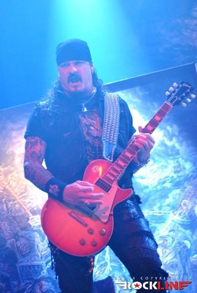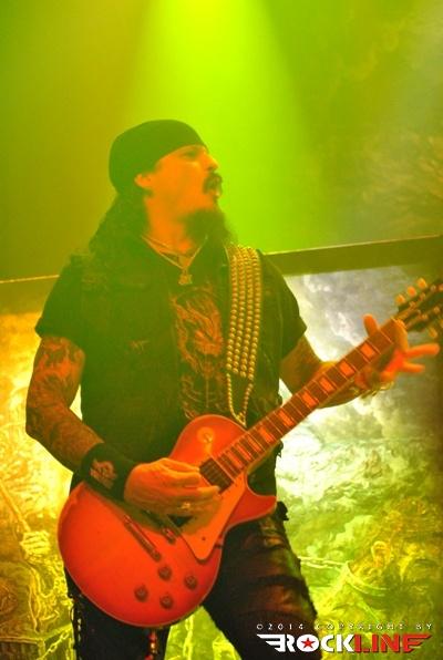 Dvorana Kina Šiške je bila nekaj minut čez deseto že dodobra napolnjena in napetost v zraku pred nastopom ameriških veteranov je bila na vrhuncu. Iced Earth so z dobrodošlico nad Šiško spustili kugo babilonske vlačuge in Ljubljano pozdravili z naslovnim komadom nove plošče Plagues of Babylon. Ameriška zasedba pod vodstvom železne roke, šefa Jona Schafferja, se je po desetletju studijskega tavanja v temi leta 2011 med žive znova vrnila s spektakularno dobro ploščo Dystopia ter novim imenom v vlogi vokalista. Schafferju je na pomoč priskočil izredni kanadski vokalist Stu Block (ex-Into Eternity) ter skupini vdihnil novo življenje. Da Dystopia ni bila le srečni zadetek dokazuje novi album, ki sicer ne dosega svojega predhodnika, a je dokaz, da Iced Earth še zdaleč niso za odpis. Skupina je tako tudi v živo predstavila slabo polovico albuma in nekaj komadov ima dejansko potencial, da postane stalni repertoar zasedbe tudi v prihodnje (Plagues of Babylon, Democide, If I Could See You in Cthulhu). Babilonske kuge imajo namreč močno mračen, apokaliptičen in epski prizvok, ki se tudi v živo dobro odnese. Refreni so tipično icedearthovsko pompozni in zlahka se je pridružiti fantastični Stujevi vokalni izvedbi, ki v živo naravnost blesti. K sreči se je temačnejši podobi novega albuma pridružila tudi oprava zasedbe, ki zdaj zaradi opustitve svetlega jeansa z nakurčniki ne zgleda več kmetavzarska, temveč temnejši imidž bolj pritiče skupini. Če je levji delež setliste zasedala predstavitev novega albuma (zlahka bi sicer odrezali enega ali dva in namenili prostor kakšni starejši klasiki), pa je skupina poskrbela za nekaj pravih sladkorčkov. Kocine so se dvigovale in glasilke trpele ob nepozabni izvedbi večnih Blessed Are You, Vengeance Is Mine, My Own Savior ter čudoviti, srhljivo otožni baladi A Question of Heaven s katero so Iced Earth, presenetljivo, zaključili redni del koncerta. Omeniti velja tudi z revolucionarnim duhom prežeto rušilno himno z Dystopie, V, pri kateri Stu, kot običajno, po zraku maha z masko slavnega britanskega junaka Guya Fawkesa (tudi antiheroja odličnega stripa Alana Moora, V For Vendetta in istoimenskega filma brata in po novem sestre Wachowski) ter že dolgo neslišanega Red Baron/Blue Max (pa čeprav bi lahko z The Glorious Burden izbrali tudi kaj boljšega).