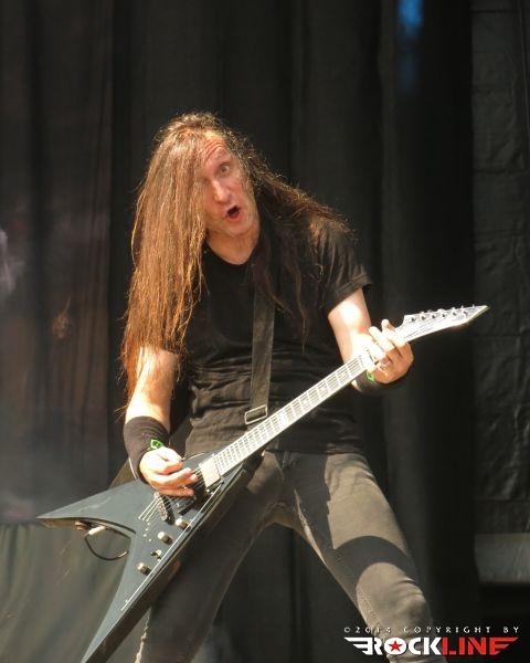Po nastopu Riot V je sledila še ena vrhunska predstava in zagotovo en od katarzičnih vrhuncev prvega dne festivala. Nastop Bay Area thrash metal veteranov Exodus. Prvi s povratnikom Stevom Zetrom Souzo po letu 2004. Kdor se nemara spominja, so Exodus v juniju 2004 nastopili z Zetrom tudi v ljubljanskem klubu K4. Šlo je za enega takrat zadnjih nastopov skupine z Zetrom v postavi, preden je bend nadaljeval kariero z Robom Dukesom na vodilnih vokalih. Exodus so se predstavili na Bang Your Head!!!, kot bi prispeli z drugega planeta. V hipu je bilo namreč jasno eno! »Zetro« = Exodus. Navkljub obilni kilaži, ki jo je možak navajen ugodja pridelal v zadnji dekadi, je pravzaprav Zetro v postavi Exodus, njihova odrešilna bilka. Ne glede na sotrk težkih karakterjev, ki so pred leti povzročili njegov odhod iz skupine, je Zetro s specifikami odrske karizme vokalist kalibra izjemnega frontmana. Mož je poveljnik, ki izbira prave besede v pravem trenutku, brije norca iz sebe, članov benda in publike na prisrčen, hudomušen način. Nagovarja publiko k početju vseh mogočih neumnosti pred odrom. Pred izvefbo The Toxic Waltz je previdno vprašal prisotne, če so prinesli s seboj svoj par plesnih čevljev. Seveda je koncertni nastop briljantno preznojenih in prerojenih Exodus dostavil kup mosh pitov, kup rogoviljenja, polivanja piva, razbijanja glav. Kombinacija dveh izjemnih kitarskih težkokategornikov Garyja Holta, ki je pridelal Gandalfovsko brado, kot tudi lep odmerek okrasnega sala, v navezi z vselej silovito angažiranim Leejem Altusem (Heathen), je delovala superiorno. Nepopustljivo, zagrizeno, z ostrino šredanja, kot jo zahteva pojem primordialne »thrash metal« biblije. Bend je v set listo vrgel nekaj več materiala iz albuma »Tempo of the Damned« (2002) ter seveda vzdrževal nepopustljivost hudičevskega dosjeja z »Bonded By Blood« klasikami. Kot povedano. Nastop Exodus je veljal za enega vrhuncev prvega dne.