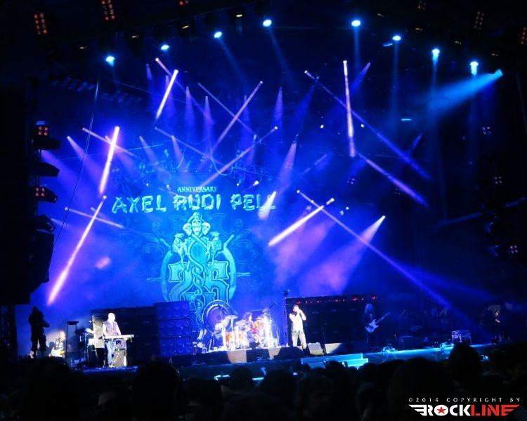 Prvi dan festivala je na glavni oder privabil izvajalca manj. Zakaj? Nastop glavnega nosilca prvega dneva Axla Rudi Pella je bil namreč neverjetno dolg. Skovan je bil, kot glasbena avantura skozi različne ere njegovega udejstvovanja. Začenši s kariero Steeler, pa naprej s samostojno kariro kot A.R.P. ali Axel Rudi Pell band, medtem ko je v teatralnem izhodu tega triurnega maratona mož namenil pozornost izvedbi ultimativnih rockovskih klasik v družbi posebnih gostov, ki so zapustile občuten pečat s svojim likom in delom na rock sceni. A pojdimo po vrsti. Uvodoma se je spektakel odprl s štirimi Steeler klasikami, kjer sta bas kitari izmenjala Volker Krawczak, ki je zaigral uvodno Call Her Princess (»Steeler«, 1984) ter njegov naslednik v skupini Roland Hag za izvedbo Night After Night (»Strike Back«, 1986), Rockin' the City (»Strike Back«, 1986) in Undercover Animal (»Undercover Animal«, 1988). Zanimivo, da je bend izpustil izvedbo vsaj ene točke iz albuma »Rulin' the Earth« (1985). Uvodoma so Steeler nastopili v originalnih postavah: Axel Rudi Pell na kitari, Tom Eder na ritem kitari, bobnar Jan Yildiral in oba že omenjena basista. Zagotovo trenutek Pellove kariere, ki se bo težko še kdaj v prihodnje ponovil.