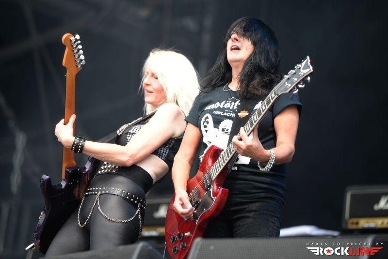 Oder so nasledila dekleta. No recimo raje gospe. Veteranke heavy metala. Vseženska zasedba Girlschool. Namesto da bi doma pazile svoje vnuke, se pri svojih dobrih šestdesetih, še vedno raje potepajo po odrih sveta. Zadnjo konkretno turnejo so opravile prav v lanski jeseni, ko so, skupaj s Saxon, odpirale koncertne večere pred pokojnimi pankrti rock'n'rolla, edinstvenimi Motörhead. Na njihov zadnji turneji, posvečeni promociji albuma »Bad Magic«. Lepo jih je videti kljubovati. Tri med njimi so originalne in nerazdružljive od 1977 dalje. Enid Williams na bas kitari, pevka in ritem kitaristka Kim McAuliffe ter bobnarka Denise Duffort. Dolžnost glavne kitaristke je, po tragični smrti (za rakom na hrbtenjači) originalne članice Kelly Johnson, leta 2008 prevzela Jackie Chambers. Kvintet ostaja vrhunsko našpičen. Klasike albuma »Hit And Run«, ki se jih je na repertoarju zvrstilo kar šest (C'mon Let's Go, Future Flash, naslovna skladba, The Hunter, Kick It Down, Watch Your Step) učinkujejo fenomenalno, to je »zimzeleno« in kvartet izkazuje tudi na zrela leta neverjetno suverenost ter kompaktno uigranost. Glavnino odra je zapolnjevala prav Jackie Chambers, ki se je aktivno sprehajala od Kim do Enid in se znova vračala na skrajno levo stran odra (na svojo pozicijo). Pretežno klasični koncertni repertoar so Girlschool odprle s točko studijskega prvenca »Demolitoion«, se pravi Demolition Boys, prav tako paso taistemu albumu posvetile pozornost v samem zaključku nastopa, ko je bend ušpičil predelavo Gun klasike Race With the Devil ter za njo (manjkajočo) in vseskozi pričakovano Emergency, pri čemer je sklenil svoj nastop v velikem slogu. Repertoar so zapolnjevale še novejše tri skladbe in sicer I Spy iz albuma »Legacy« (2009) in skladbi Come the Revolution ter Guilt As Sin iz aktualnega studijskega albuma »Guilty As Sin« (2015).