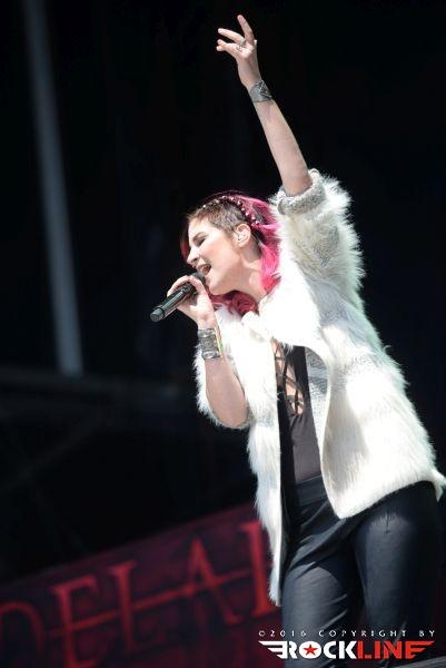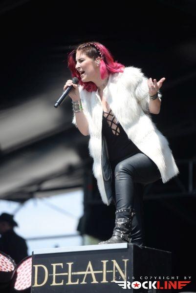 Oder so nasledili nizozemski simfonični power metalci Delain, ki jih vodi pečatni vokal karizmatične pevke Charlotte Wessels. Ta je brez posebnih naporov kaj hitro uročila publiko, s svojo izdelano odrsko igro in čuteče izraznim vokalom, ki v glasbeni izkaznici skupine, pač vseskozi dominira. Bend se nahaja v pričakovanju izida novega studijskega albuma z naslovom »Moonbath«, ki je napovedan za konec letošnjega avgusta in ob Charlotte pa zapolnjujejo postavo Delain še Martijn Westerhold (klaviature, šef zasedbe), Timo Somers (kitara), sveže pridružena ritem kitaristka Meren Bechtold in bobnar Ruben Israel. Na odru je manjkal basist. Kdo je trenutni basist skupine, vedo le Delain. Nemara ga iščejo, kwer se je zgodba čez dobrih deset dni, to je 28.07.2016 ponovila tud na nastopu zasedbe v Tolminu (Metaldays festival). Ta manjko nizkih tonov, oziroma »basovske noge«, ni ti ni šlo kdove kako pogrešati, nemara tudi zavoljo sedemstrunske kitare, ki jo uporablja na odru Merel in je doprinesel k bolj jedremu, če ne kar bolj mastnemu zvoku kitarskih fraz. Kakorkoli, oder je postal za petdeset minut Charlotte Wessels. Punca je hipoma dvignila publiko s svojo dinamično predstavo in nenehnim spodbujanjem publike. Na set listi so prednjačile skladbe albuma »We Are The Others« (Not Enough, Get the Devil Out of Me, Mother Machine, naslovna skladba), bend pa je odprl koncert s skladbo Suckerpunch, vzeto iz aktualnega EPja »Lunar Prelude«. Na sredini nastopa so se Delain odločili predstaviti tudi povsem novo skladbo z naslovom The Glory And the Scum, ki bo našla svoje regularno mesto na prihajajočem novem studijskem albumu. Še ena tipična Delain kompozicija urezana v maniri visoko muzikalične vrednosti, ki sicer spremlja s pompom okrašeni simfonični power metal zasedbe. Preostanek repertoarja so zapolnjevale še »The Human Contradiction« skladbe Don't Let Go, Army of Dolls in Here Come thre Vultures, bend pa je zasolil set listo tudi z dvema skladbama studijskega prvenca »Lucidity« in sicer The Gathering in Sleepwalkers Dream.