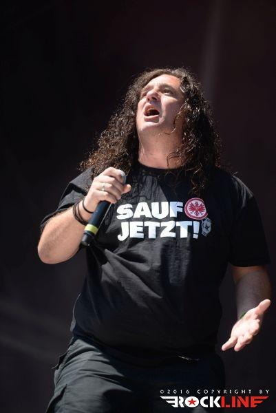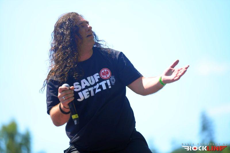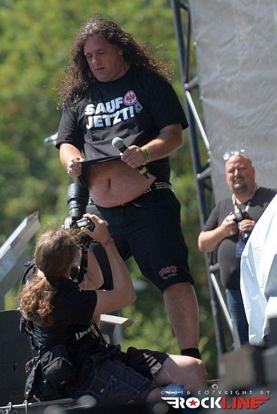 Prvi vrhunec zadnjega dne festivala so na oder zanesli domačini Tankard. Ti so do tega trenutka zbrali pred odrom daleč največje število privržencev. Kar v ničemer ne čudi. Sama glasbena izkaznica skupine veleva že po imenu sodeč pečanje trših zvokov z alkoholnimi zvarki. Preliti hektolitri le teh, kar sodi v občo nemško kulturo pitja piva in seveda strupeno thrash metalsko riffanje vsevprek. To je bend, ki v svojem glasbenem izrazu vseskozi »na debelo« izpostavlja tudi zajebantsko lucidnosti, kreator vsega tega teatra, pa je seveda kremeniti in gorostasi Andreas Geremia, strah in trepet vseh svetovnih tehtnic. Kvartet zapolnjujejo še Andreas Gutjahr (kitara), Frank Thorwarth (bas kitara) in Olaf Zissel (bobni). Čeprav ima bend pod streho kar 16,. studijskih albumov, je bila slaba ura minutaže odločno premalo, da med nastopom obrede celo diskografijo. Kakorkoli. To niti ni bistveno, saj je sama pojava »Gerre« na odru glavni magnet, v katerega so uprte prav vse oči in ušesa. Mož se je vseskozi norčeval tako iz odrskih kamermanov, katerim je iz neposredne bližine kazal goli trebuh, prav tako pa ni ostal dolžan fotografom. Posebej zabaven je bil tretji komad,imenovan Rules for Fools, kjer je »Gerri« priletel na oder »push up« modrc. Le tega si je mož, ki mu je dejanje vlilo kup moške samozavesti, po krajšem ogledovanju seveda poveznil čez glavo. No po zaključku skladbe The Morning After, ki seveda cilja na težko glavo po prepitem neurju prejšnje noči, je na oder stopil Horst s svojo ekipo. Le ta je bila družno opremljena s steklenicami piva, obenem pa so možje prinesli na oder dve mizi in barske stole. Tako se je oder predrugačil v pravo pivsko birtijo, kjer se je v nadaljevanju nastopa Tankard, veselo nalivala cela četa organizacijske ekipe festivala, to je kakšnih ducat članov. Horst je ob prihodu na oder podaril Gerri celo »air kitaro«, s katero pa se slednji ni kaj dosti ukvarjal. Sočni komentarji, samoironija in britje norcev na sebi lasten račun, pikri črni humor na rovaš blodnega življenja v krasnem novem svetu, skratka poznati si moral tudi malo nemškega jezika in vsa stvar je dosegla seveda svoj pravi namen, ki ga le stežka pozabiš. Tankard so dodobra naoljili in nakremili občinstvo. Balingen je še dolgo po nastopu dehtel po pivskih hlapih. Še lep čas potem. ko sta v zaključku odjeknili A Girl Named Cerveza (»Dekle po imenu Pivo«) in za njo zaključna (in pričakovana) himna zasedbe (Empty) Tankard. Nori šov! »Počivajte torej v pivu!« (Rest in beer).
