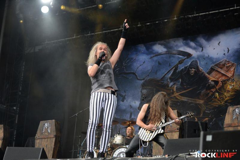 Sledil je nastop legendarnih nemških heavy metalcev Grave Digger iz Bochuma. Kvintet v postavi Chris Boltendahl (vokal), Axel Ritt (kitara), Stefan Arnold (bobni), Jens Becker (bas kitara) in novo prišlek Marcus Kneip (klaviature), je stari znanec balingenskih odrov, zadnjič pa je tu nastopil pred dvema letoma, kot glavni nosilec »ogrevalnega« dne . No, Grave Digger so ponudili precej predvidljiv nastop, ki je bil sestavljen iz repertoarja že dodobra zguljenih klasik skupine. Nekakšen skrajšani »best of«, kolikor so lahko skladb pač fantje sploh stlačili, v dobro uro okrnjeno in razpoložljivo minutažo koncerta. Kritike še ni konec. Bend si je drznil spregledati izvedbo vsaj ene skladbe iz razvpitega in do tega dne najboljšega albuma celotne Grave Digger kariere, to je albuma »Knights Of The Cross« (1998). Ob tem omemba, da so znova spregledali sicer izvrsten klasični album »Heart of Darkness« (1995), kar zvodeni. Tudi iz albuma »The Reaper« (1993) smo prejeli že večkrat slišani Wedding Day. Bend ni pozabil uvrstiti v repertoar dveh novejših skladb iz aktualnega albuma »Return of the Reaper« in sicer Tattoed Rider in Season of the Witch, prav tako pa se je povsem brez potrebe dotaknil ne prav posrečenega albuma »The Clans Will Rise Again« (2010) z izvedbo skladbe Highland Farewell. Ob obveznih standardih, ti so: Dark of the Sun (na poziciji otvoritve), nadalje The Round Table, Excalibur, seveda Rebellion ( The Clans Are Marching) ter zaključni in rapotegnjeni Heavy Metal Breakdown, ni ta koncerni nastop pokazal nobenih posebnih hib. Le tiste, ki smo jo vajeni. Specifični krulež Boltendahla pač terja občasno to, da možakarja kakšna višja linija »zakolje«. Tam bodisi priredi vokal, ali pa izpade prav teatralno smešen, ker visokih linij s svojim kruležem ne more več prav dobro zvoziti. Nemara je prav zaradi tega izpadla iz repertoarja skladba Knights of the Cross, ki sicer ne sme manjkati na nobenem pravem Grave Digger koncertu.