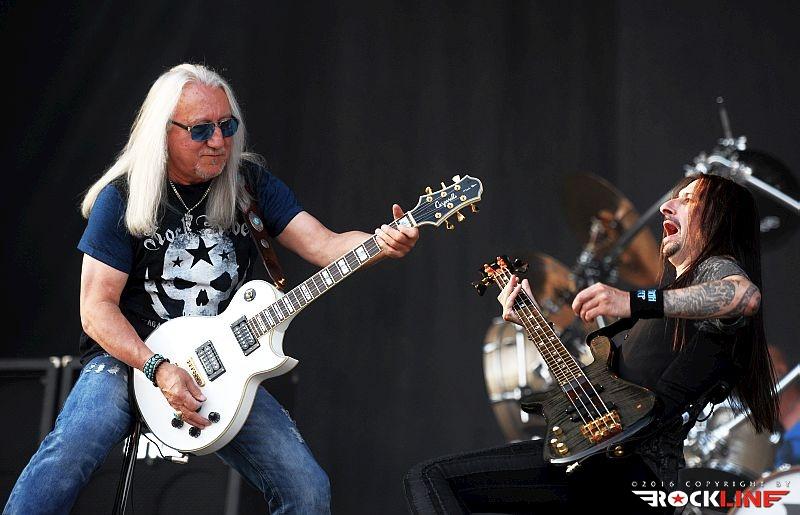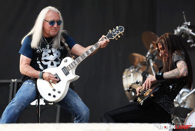 Tako je obveljalo to tudi v nadaljevanju, ko so na glavni oder krenili veliki rock'n'roll guruji Uriah Heep. Tudi ti niso posebej imponirali s svojo pojavo. Na odru so predstavili pravzaprav skrajšani repertoar marčevske headlinerske turneje po Evropi. Koncert so začeli z udarnima klasikama sedemdesetih in seveda obveznima točkama železnega repertoarja, to sta Gypsy in Look At Yourself, obe pa je nasledilo pravzaprav edino pravo sladostrastje set liste oziroma izvedba ena najboljših, če ne pa vsaj najbolj zanimivih skladb albuma »Look At Yourself«. Govora je o kompozicijsko nadvse zanimivi in misteriozni Shadow Of A Grief, z raztegnjenim progresivno psihadeličnim instrumentalnim delom. Bend je v uri nastopa stresel tudi tri nove skladbe albuma »Outsider« in sicer The Law, Can't Take That Away in One Minute, medtem ko so preostanek minutaže koncerta zapolnjevale »oguljena« Stealin', vselej mistična »Magician's Birthday« klasika Sunrise in v predvidljivem obvezni Easy Livin' ter kot vedno, veliki hit, temelječ na vsega dveh akordih! To je (znova namerno razpotegnjena) Lady in Black. Čeprav so Uriah Heep neverjetno izkušeni mojstri svoje obrti, saj delujejo že krepkih 46. let na sceni, pa je zanimivo, da je njihova statičnost na orjaškem odru festivala, v dobršni meri dolgočasila. Tudi Bernie Shaw ni kdove kako ihtavo izkoriščal catwalka ter razpoložljive odrske praznine. Še največ energije je z gibanjem evociral preko koncerta novi basist skupine Dave Rimmer in pa seveda vedno podivjani bobnarski telovadec Russell Gillbrook. V občem seštevku sicer običajno dobra, a rutinska in predvidljiva predstava legend.