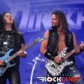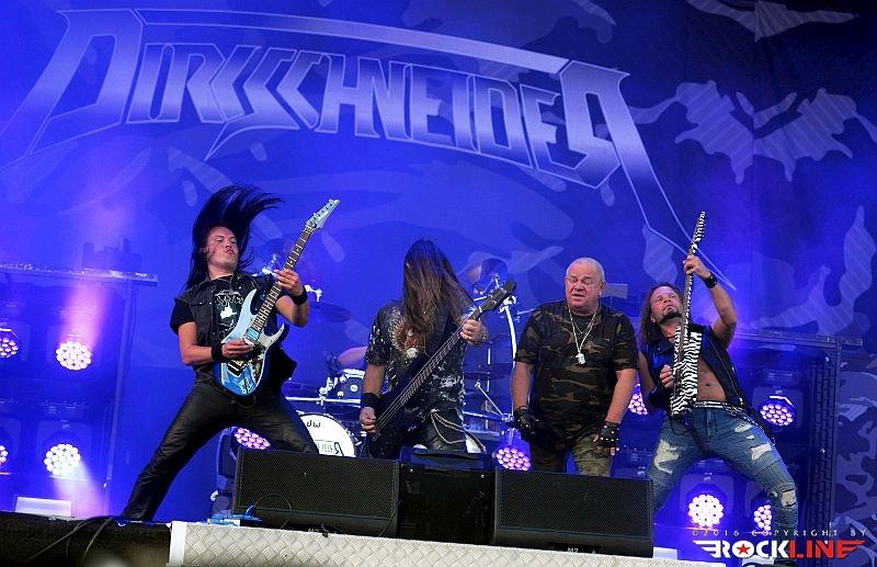 Bang Your Head!!! je v poznem popoldanskem času na glavnem odru pričakoval zanimivo pojavo! Zasedbo Dirkschneider, ki se je za posebno priložnost v lanskem letu tako začasno preimenovala iz zasedbe U.D.O. Njen vodja je seveda Udo Dirkschneider, znameniti nekdanji prvi glas zasedbe Accept. Udo se je za to potezo odločil zato, da seveda znova navleče publiko izdatneje nase in na ime svoje skupine. Repertoar zasedbe Dirkschneider zaobjema v čistokrvnem iztržku le Accept material, ki je nastal z Dirkschneiderjem v postavi. In ker služi glas stričku Dirskchenidrju tudi na zrela leta pravzaprav popolno, kar je nedvoumno potrdila tudi njegova tokratna predstava na Balingenu, je Udo zelo dobro pretehtal odločitev, zakaj se ne želi več vrniti v ekipo današnjih, to je od leta 2009 dalje, znova delujočih Accept. Odločitev je povsem tržne narave. Preračunal je namreč, da lahko sam s svojo skupino zasluži precej več, kot če bi izvajal Accept klasike v družbi svojih nekdanjih Accept kompanjonov Wolfa Hoffmanna in Petra Baltesa. Torej, kvintet zapolnjujejo ob Udu Dirkscheniderju še večno zvesti oziroma dolgoletni član ekipe basist Fitty Weinhold, nadalje bobnar (in Udov sin) Sven Dirkschneider ter kitarista Rus Andrey Smirnov, ki je zadolžen za glavnino solaž in Finec Kasperi Heikkinen . Prizorišče je postalo nabito polno, ko je Udo skozi meglice mrko hladno priromal na oder in z ekipo silovito udaril v nov z Acceptovski marš, ki ga je načela Starlight! Vse. Prav vso odrsko igro, značilno za Accept, so Dirkschneider prenesli na svoj šov. Posledično s tem so oder neverjetno spretno in optimalno izkoristili oziroma zapolnjevali. Udo poseduje izjemno karizmo, zato se mu ni bilo treba veliko naprezati, da bi spravil publiko k burnemu sodelovanju. Preprosto je njegova figura dovolj, da mu publika je iz rok. Bend je vključil v repertoar tudi izvrstno Midnight Mover, ki je z efektivnostjo spevnega refrena še čvrsteje priklenila publiko nase. Potem pa so sledile nič manj kultne London Leatherboys, (zelo zgodaj na repertoarju) tudi Princess of a Down, pa Breaker, Restless And Wild, Son of A Bitch, Screaming for a Love-Bite, koncert pa se je v drugi polovici prevešal v svoj vrhunec, ko so Dirkschneider neusmiljeno zalagali prizorišče lačno Accept glasbe s kultnimi kitarskimi frazami najžlahtnejših prvin tevtonskega metal porekla na čelu s pričakovanimi Metal Heart, Fast As A Shark, Balls to the Wall, medtem ko je koncert sklenila Breaker, skladba, ki je Accept že dlje časa niso uvrstili v svoje repertoarje aktualnih koncertnih turnej. Od prve do zadnje sekunde popolni lom! Peklenska atmosfera. Razvpiti nemški metal do kosti, je za dobro uro podjarmil domače občinstvo in ga zibal v svojih nedrjih ter crkljal. Hipnotično. Fanatično. Neverjetno je kaj spravi nemška publika od sebe ob vsej svoji predanosti do magije metala. Sploh domače proizvodnje. Dirkschneider se torej obvezno gleda na nastopih v Nemčiji! Nasvidenje torej do jesenskega srečanja.
