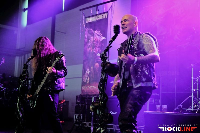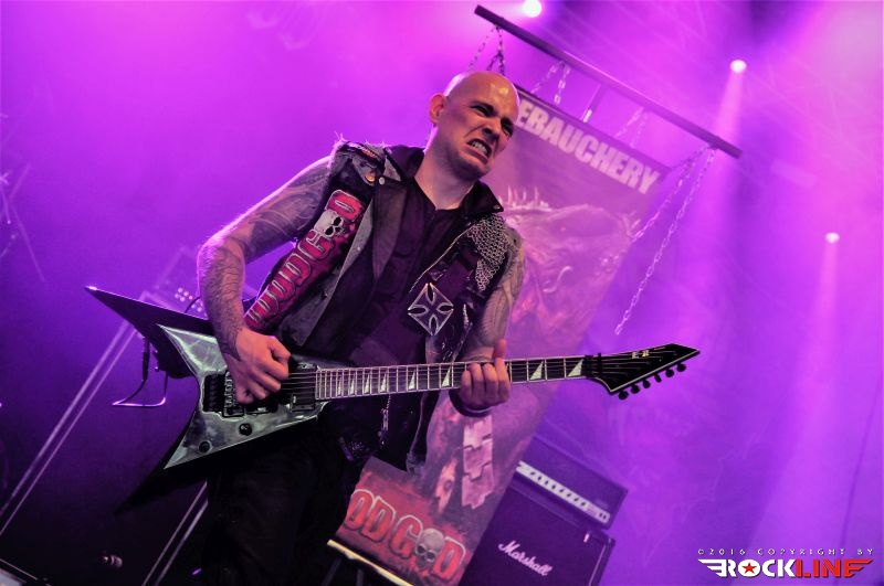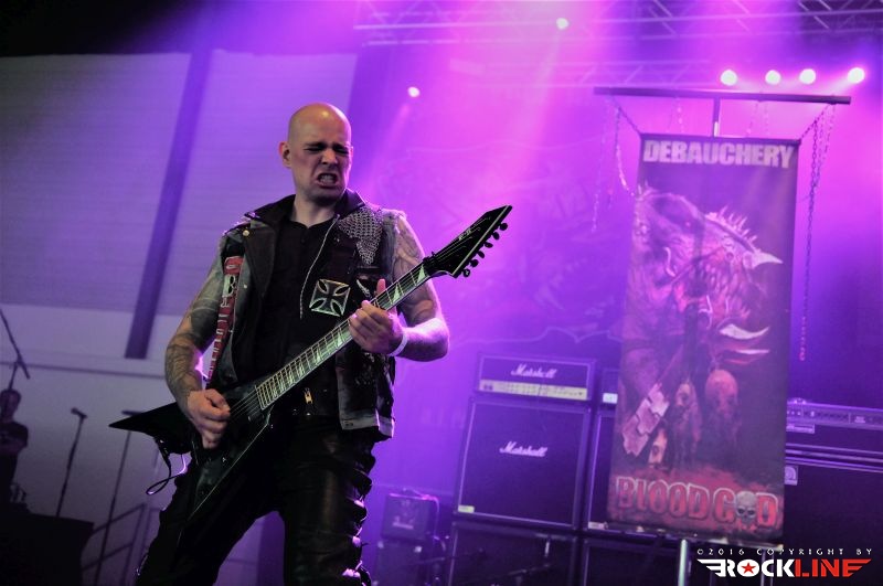 Ura je bila pozno popoldanska. Za razliko od preteklih let, ko obvezno obiščemo sredi prvega dne našega prihoda pivnico Alt Balingen, v središču mesta, smo tokrat vedrili blizu prizorišča, na relaciji kemp – diskont piva ter se dododbra zabeljeni podali ob pozni popoldanski uri proti dvorani Volksbankmesse, kjer je bil napovedan nastop prve zasedbe. To so Blood God iz Stuttgarta, ki so nastopili na festivalu že pred dvema letoma. Trio Blood God, ki ga vodi Thomas Gurrath, ta je skupino ustvaril iz projekta Big Ball, preograva pretežno heavy do hard rock, s komponističnim navdihom, ki se opira na zapuščino zasedb, kot sta AC/DC ali/in Accept. Thomas Gurrath poseduje vokal, ki spominja na Uda Dirkschneiderja, tu je heavy metal s prijemi, ki vlečejo na staro šolo hard rocka. Taisti trio pa se lahko v hipu prelevi v death metalce Debauchery. To se je tudi zgodilo, a naslednji dan. Čutilo se je da so Blood God domačini, da jih publika zelo dobro pozna in tako so naleteli tudi zna zelo dober odziv in na sodelovanje. Uvodni »party time žur« z nezahtevnimi metalskimi koračnicami, ki gredo hitro v uho in te krepčajo z adrenalinsko naglico. Skladbe Vampire Holocaust, Crusaders of God, City Of Bones, Sexy Music, for Sexy People, …. So poskrbele za posrečeno kombinacijo zabavljaštva ter okulta, bend pa je dostavil izredno koherentno predstavo ter prepričal z uigranostjo ter poštudiranim, to je profesionalno oddelanim, nastopom.