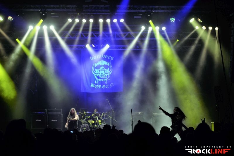 Ker je želel organizator v glasbenem oziru potešiti okuse prav vseh generacij, ki zvesto obiskujejo sicer Bang Your Head!!!, je na rep ogrevalnega dne postavil zasedbo Bömbers. To je tribute to Motörhead skupina, ki jo vodi znameniti Olve Elkemo, vsem bolje znan pod »zloglasnim« vzdevkom Abbath (»Abbathov klanec« je sicer vsem znano zaletno mesto tega glasbenika na tolminskem Metaldays festivalu). Mož je tudi nekdanji nosilni steber black metalcev Immortal. Danes torej Bömber, jutri Abbath, ki so dejansko tako tudi nastopili naslednjega dne na festivalu! Bömber so torej stresli sceno s priredbami skupine Motörhead. Kaj reči? Starejšim možakarjem, s katerim sem kramljal drugi dan, vsa stvar nikakor ni dišala in tako niso skrivali ogorčenja nad predstavo. Vsekakor je Olve karizma brez primere. Ne glede na to, da je sama njegova poza zelo dobro povzela odrsko gibanje Lemmyja in njegove tike, pa je v vokalnem oziru Olve, le svetlobno miljo oddaljen od železnega kanclerja. Vokalno gre barva v Motörhead rife in je torej z njimi povsem spravljiva. A, ko se Olve loteva imitacije Lemmyjeve hripavosti, prične zelo hitro "odnašati" njegovo imitiranje proti, že zelo dobro znanemu Immortal grčanju. Sicer pa se ne gre pridušati. Bend je igral set listo s komadi, ki so jih Motörhead na zrela leta delovanja igrali redko, ali sploh ne več. Nasploh so zabavale I'll Be Your Sister, Jailbait, The Hammer, Stone Dead Forever in v zaključnem delu Motörhead. Sicer pa je bend začinil repertoar s kultnmi klasikami skupine. Set je odprl kar z Ace Of Spades, potem pa so tu bile še: Stay Clean, No Class, Iron Fist, Shoot You in the Back, Damage Case, Metropolis (s prekrižanimi mezinčki), Over the Top, Killed By Death, Bomber in sklepna Overkill. Nemara bi Olve le lahko malo manj popravlja pričesko med koncertom, saj Lemmy nikdar ni bil šminka. Sicer pa spravljivo. Od igre, kompaktnosti,samega »parodiranja« oziroma imitiranja. Dvorana se je v tem času kar precej spraznila. Zavoljo tega, da je glavnina prišla na Lordi špil, ki so glasbeno nekompatibilni z Motörhead. No, pa tudi tisti preostanek zrelejše gospode, je ob pridušanju prej zapustil prizorišče, kot bi ga, če bi bil na odru nekdo, ki bi jih bolj spominjal na Lemmyja, kot jih je tega večera to uspelo Olveju s svojima pajdašema. Vsekakor sta tu še dva faktorja, zaradi katerih so nekateri vihali nosove. Prvi je velika razvajenost nemške publike, druga pa spoštljiv odnos do lika in dela pokojnih Motörhead, ki težko dopušča, da se jih kdo sploh »dotakne« (četudi samo z daljinskim upravljavcem). Suma Sumarum. Povsem korektno in zalo zabavno teatralno rožljanje in rogoviljenje, z avanturo po znameniti eri zlatih časov rock'n'rolla, to je eri, ko so na planetu lomastili nepozabni Motörhead.