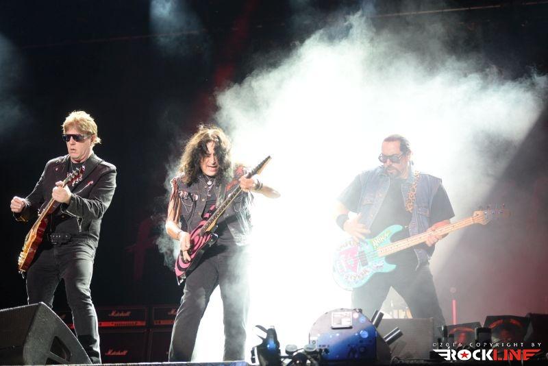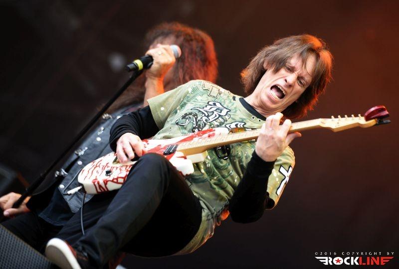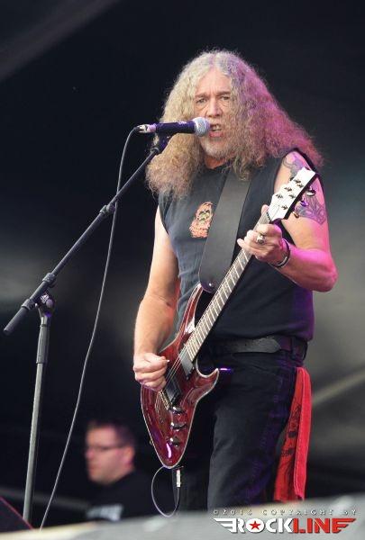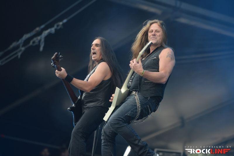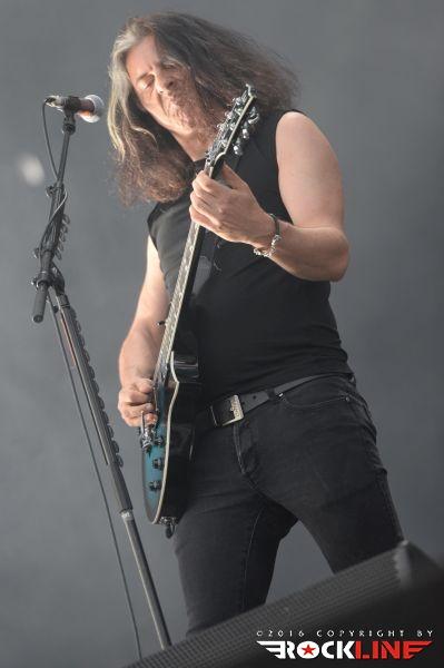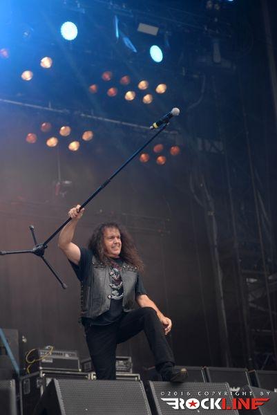 Metal Church, še eni veliki ameriški heavy metal veterani, so stopili na oder ob najhujši pripeki, podobno kot pred dvema letoma v Tolminu, vendar jih je vročinskega trpljenja odrešila nizka oblačnost, ki se je nad festivalsko prizorišče nenadoma prikradla izza bližnjega gričevja. Okrepljeni z povratnikom Mikeom Howeom, možem neslutenih vokalnih višavij ter v standardnem formatu, ki ga zastopajo poleg šefa in kitarista Kurdta Vanderhoofa še bobnar Jeff Plate (Savatage), Steve Unger (bas kitara) in kitarist Rick Van Zandt, so Metal Church dostavili izredno predstavo, zlasti zavoljo živopisane set liste skozi katero so obredli prav vse ere svojega ustvarjanja. Na čelu z vrhunsko mini suito Watch the Children Pray, ki ji je delala v set listi družbo še druga »The Dark« klasika Start the Fire. Z vrnitvijo Hovea v postavo, je sledila tudi koncertna vrnitev točk albumov »Blessing in Disguise« (otvoritvena Fake Healer, za njo kasneje Badlands) ter »The Human Factor« (naslovna skladba s katero so sklenili koncert, ter še Date With Poverty in In Morning). Bend je namenil pozornost tudi novemu (in izvrstnemu) albumu »XI« s skladbama No Tomorrow in Killling Your Time ter ustrelil iz sebe bombonček istoimenskega studijskega prvenca »Metal Church« z naslovom Beyond. Docela so Metal Church presenetili tudi z integracijo skladbe Gods of Second Chance, ki izhaja iz spregledane in s strani oboževalcev (večkrat krivično) »osovražene« »Hanging In Balance«. Skratka. Energično, enovito uigrano, vihravo neukročeno. Howe je uročil z vokalom, pri tem so mu na debelo izstopile vse vratne žile, mož pa je seveda v obraz skozi uro skrajno pordečil. Kitare odbrencljane z neverjetno zbranostjo, ritem linija pa s topovsko močjo ter filigransko preciznostjo. Suma sumarum. Izredna odrska predstava legendarne skupine, ki ljubitelja klasičnega heavy metala hipoma odpihne v željena metalska nebesa.