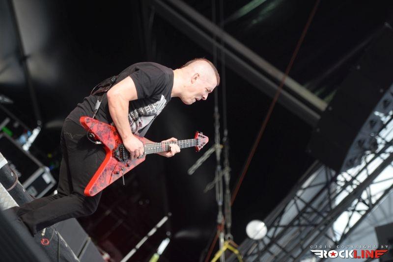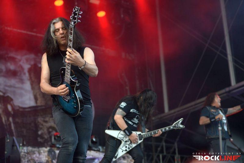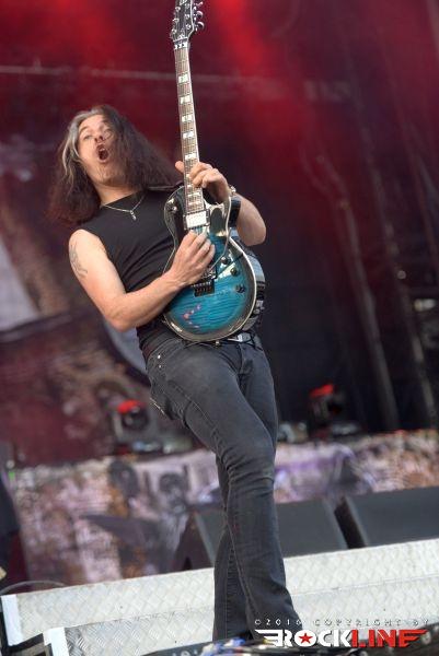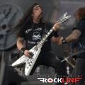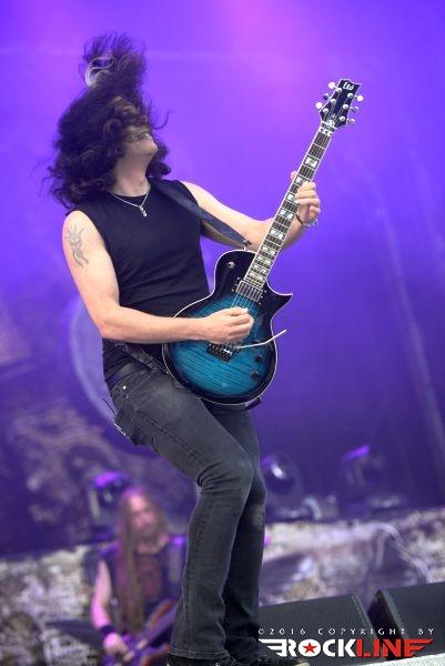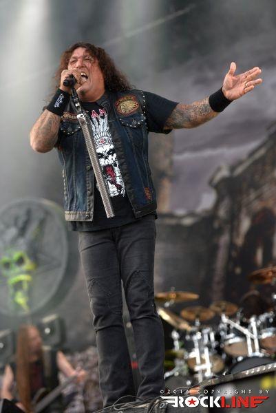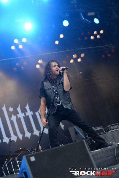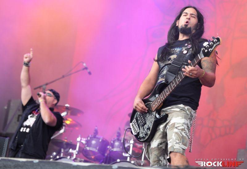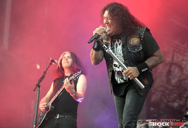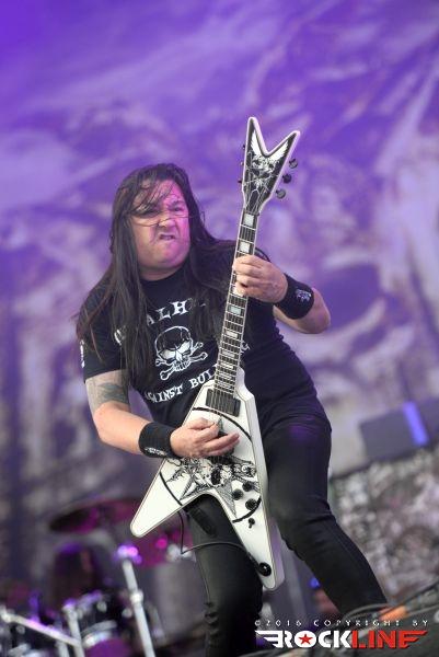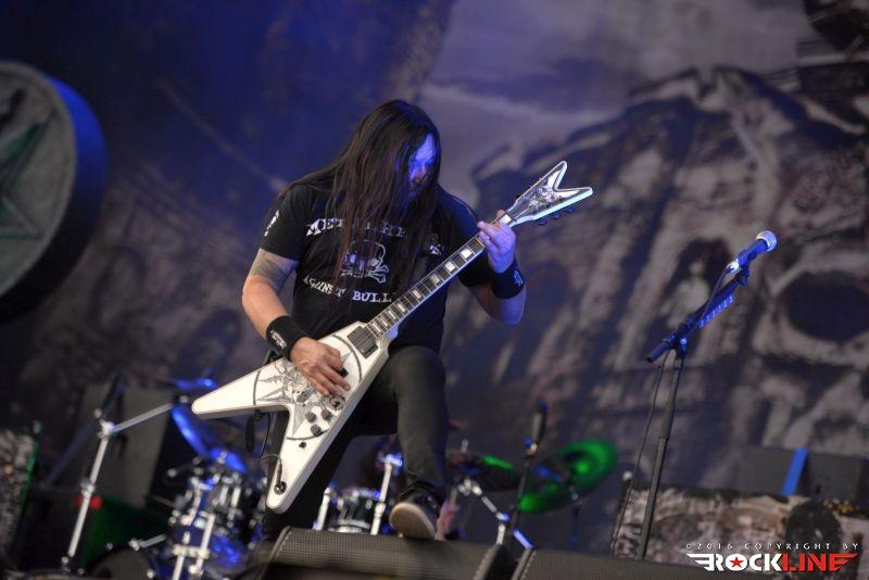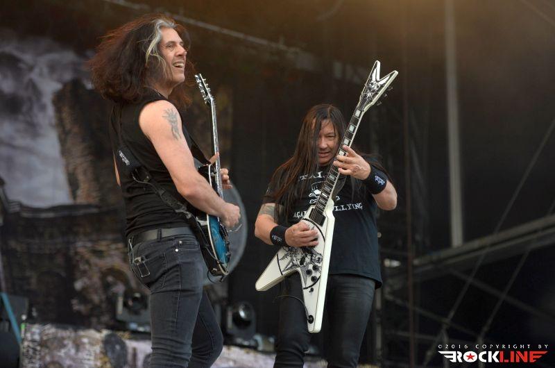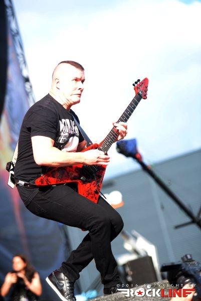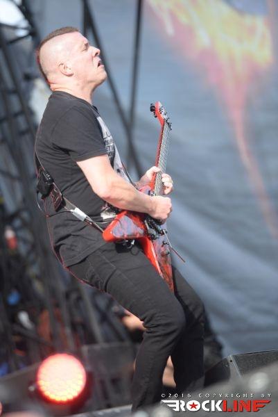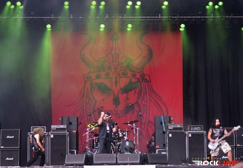 Če so Impellitteri predstavljali ekskluzivno pojavljanje drugega dne festivala, pa so izvedbeni vrhunec drugega dne pričarali s svojim prihodom na znameniti balingenski oder enkratni Testament. Veliki mojstri obrti igranja thrash metala. Znameniti kitarski dvojec Eric Peterson / Alex Scolnick, ostaja strah in trepet vseh svetovnih odrov in mnogim kitaristom velika inspiracija! Na čelu poveljuje skupini še vedno poveljuje neuničljivi indijanski poglavar Chuck Billy, medtem ko je bend okrepljen z Death to All Tour tandemom na ritem liniji. Zastopata jo namreč izredni Gene Hoglan na bobnih ter eden najboljših basistov v svetu metala, bradati Steve DiGiorgio. Izjemna postava, izjemna utrdba. Testament v živo uničujejo. Nezadržno so požirali ognjeni zublji našpičenih riffov festivalsko prizorišče, večkrat ukradli pozornost celo orjaškemu Chuckovemu egu, predvsem pa so po pričakovanju glavno koncertno izkušnjo sladostrastja, prispevale izredne solaže obeh kitaristov, zlasti moment deljenih solističnih duelov. Peterson in Scolnick veljata danes za kultno kitarsko dvojico, podobno, kot nekoč K.K. Downing in Glen Tipton pri Judas Priest. Čeprav se poraja na obzorju novi studijski album, le ta je napovedan za letošnji oktober (napovedana je tudi že turneja, na kateri odpirajo Testament večere pred, hjammm…. Amon Amarth), je skupina ustrelila kar tri skladbe iz še vedno aktualnega »Dark Roots of Earth«, s katerem je obiskala leta 2012 tudi Tolmin (Testament pridejo v Tolmin tudi v letošnjem letu, zato bodite tam). Jedro repertoarja so sestavljale kultne klasike Into the Pit, The Preacher, The New Order in Disciples of the Watch (vse z albuma »The New Order«). Edina »Legacy« klasika Over the Wall, se je znašla v set listi na samem začetku nastopa in tako učinkovito hipoma odkatapultirala množico v zrak. Manjkala ni seveda Practice What You Preach, Testament pa so svoj nastop zabelili tudi z vključitvijo dveh točk enega najagresivnejših albumov svoje kariere, to je »The Gathering« (D.N.R., Three Days in Darkness). Testament ubijajo. Vrhunska eksekucija in izvedbena briljanca, čete vrhunskih glasbenikov! In kot povedano! Posledični vrhunec drugega festivalskega dne.