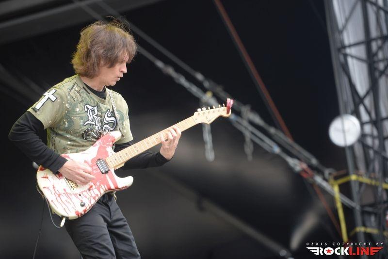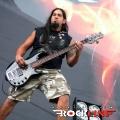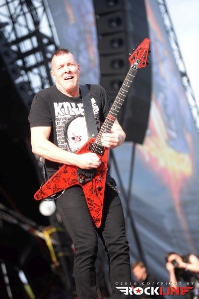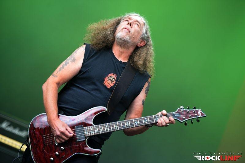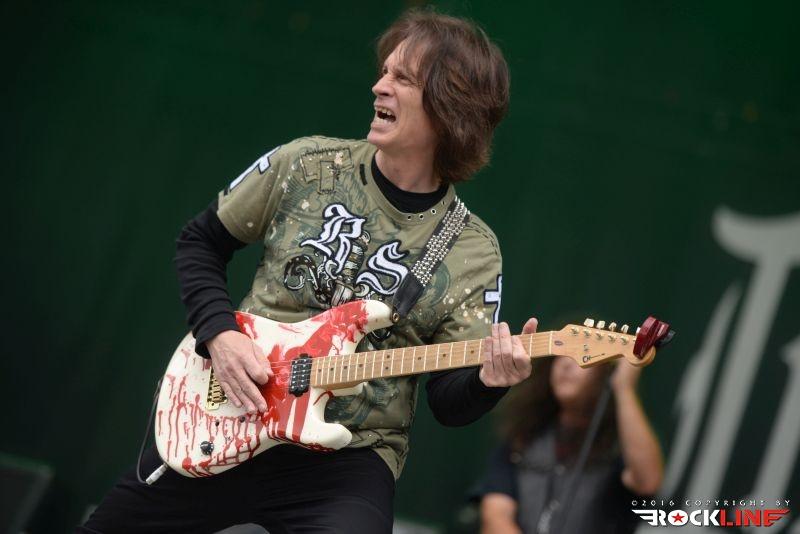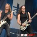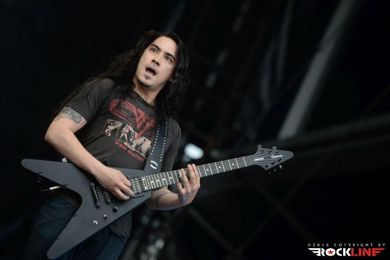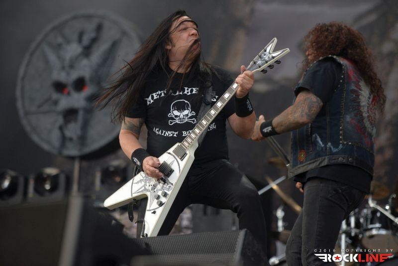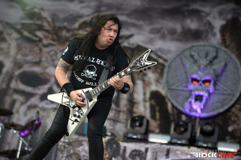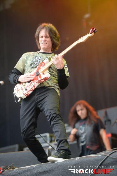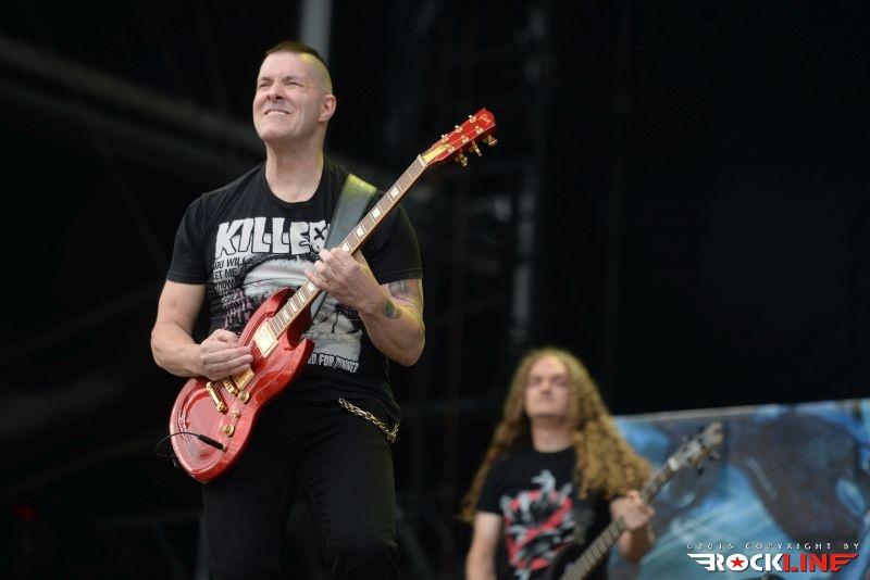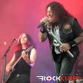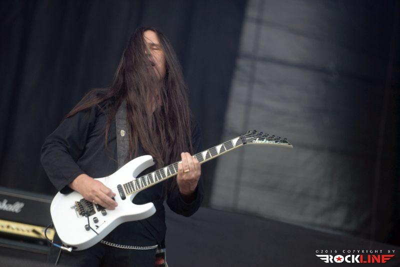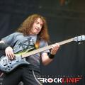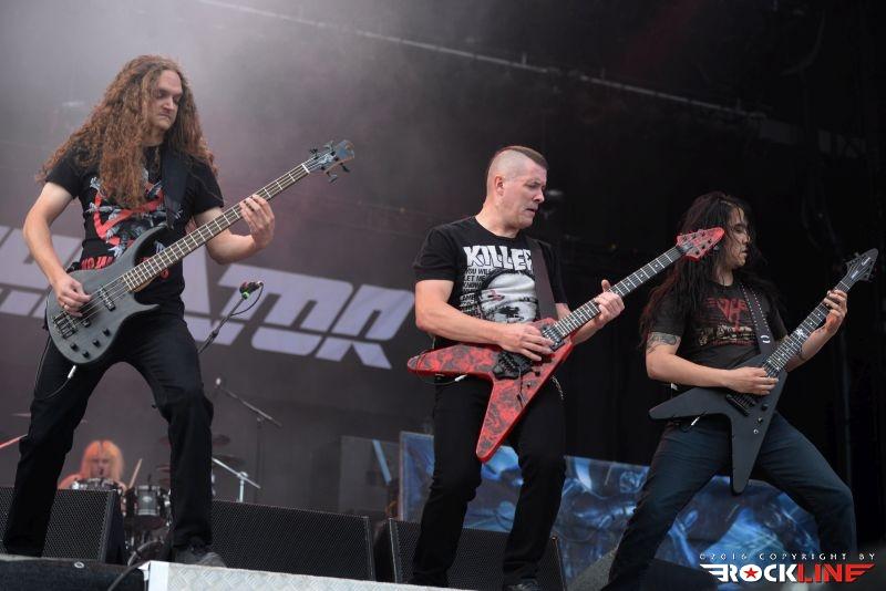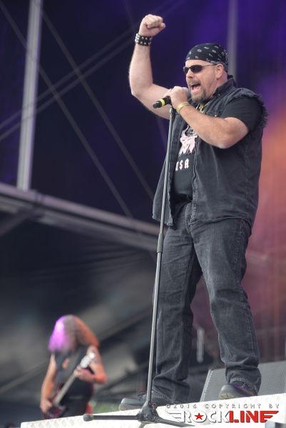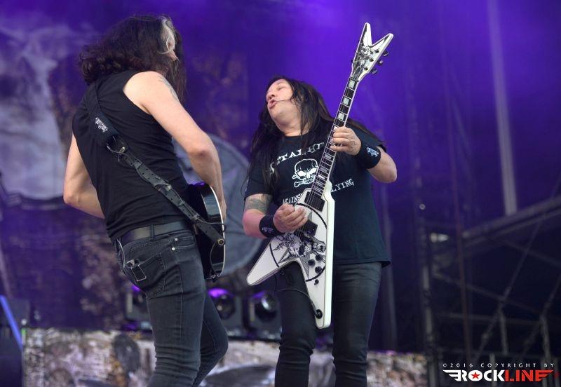 Če so Impellitteri predstavljali ekskluzivno pojavljanje drugega dne festivala, pa so izvedbeni vrhunec drugega dne pričarali s svojim prihodom na znameniti balingenski oder enkratni Testament. Veliki mojstri obrti igranja thrash metala. Znameniti kitarski dvojec Eric Peterson / Alex Scolnick, ostaja strah in trepet vseh svetovnih odrov in mnogim kitaristom velika inspiracija! Na čelu poveljuje skupini še vedno poveljuje neuničljivi indijanski poglavar Chuck Billy, medtem ko je bend okrepljen z Death to All Tour tandemom na ritem liniji. Zastopata jo namreč izredni Gene Hoglan na bobnih ter eden najboljših basistov v svetu metala, bradati Steve DiGiorgio. Izjemna postava, izjemna utrdba. Testament v živo uničujejo. Nezadržno so požirali ognjeni zublji našpičenih riffov festivalsko prizorišče, večkrat ukradli pozornost celo orjaškemu Chuckovemu egu, predvsem pa so po pričakovanju glavno koncertno izkušnjo sladostrastja, prispevale izredne solaže obeh kitaristov, zlasti moment deljenih solističnih duelov. Peterson in Scolnick veljata danes za kultno kitarsko dvojico, podobno, kot nekoč K.K. Downing in Glen Tipton pri Judas Priest. Čeprav se poraja na obzorju novi studijski album, le ta je napovedan za letošnji oktober (napovedana je tudi že turneja, na kateri odpirajo Testament večere pred, hjammm…. Amon Amarth), je skupina ustrelila kar tri skladbe iz še vedno aktualnega »Dark Roots of Earth«, s katerem je obiskala leta 2012 tudi Tolmin (Testament pridejo v Tolmin tudi v letošnjem letu, zato bodite tam). Jedro repertoarja so sestavljale kultne klasike Into the Pit, The Preacher, The New Order in Disciples of the Watch (vse z albuma »The New Order«). Edina »Legacy« klasika Over the Wall, se je znašla v set listi na samem začetku nastopa in tako učinkovito hipoma odkatapultirala množico v zrak. Manjkala ni seveda Practice What You Preach, Testament pa so svoj nastop zabelili tudi z vključitvijo dveh točk enega najagresivnejših albumov svoje kariere, to je »The Gathering« (D.N.R., Three Days in Darkness). Testament ubijajo. Vrhunska eksekucija in izvedbena briljanca, čete vrhunskih glasbenikov! In kot povedano! Posledični vrhunec drugega festivalskega dne.