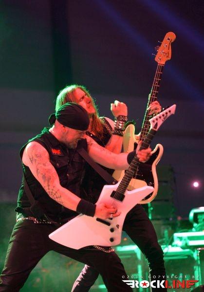 Freedom Call so znani powermetalsi veseljaki. Nemški powermetal od glave do pete. Nemška zgodba. Kdo bi si mislil, da bo skupina s tako klišejskim pristopom na sceni sploh preživela in obstala toliko let. A kvintet je povsem drugačnega mnenja in si je ob redni izdaji albumov ter rednim nastopanjem po stari evropski celini, pridobil lepo branžo domačih oboževalcev, ki stojijo za imenom skupine. Osem studijskih albumov in deveti v porajanju. Kvartet pri katerih sta v preteklosti igrala tudi kitarist Sascha Gerstner (Helloween) in bobnar Daniel Zimmermann (ex-Gamma Ray), še naprej ženeta dalje pevec in kitarist Chris Bay in njegov pajdaš oziroma basist skupine Ilker Ersin. Bend je v kompaktnem, dobro naštudiranem in po pričakovanju, več kot suverenem nastopu, zaigral repertoar sledečih skladb Union of the Strong, Tears of Babylon, Freedom Call, Farewell, The Quest, Hammer of the Gods, Power & Glory ter Warriors. Happy metal to the core!!!
