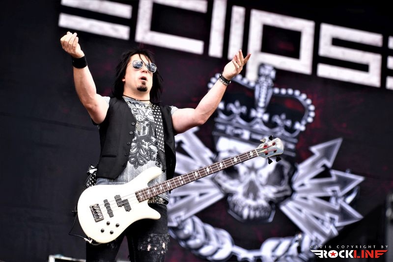 Eclipse so stari znanci Bang Your Head!!! festivala. Tu so nastopili že v lanskem letu. Delujejo skoraj dvajset let, so pa potrebovali, kar lep čas za uspešen prodor na mednarodnem prizorišču. Njihov prelomni album »Blead And Scream« jih je tja leta 2012 dokončno tudi postavil. Slovijo kot veliki perfekcionisti, držijo pa se AOR revitalizma, točneje melodičnega rocka po »skandinavsko«, vendar pri tem ne varčujejo z decibeli. Večina riffov je izredno trdo opasanih in se brez sramu spogledujejo s heavy metalom. Ekipo vodi vrhunski komponist, producent, multi-instrumentalist, pevec in nenazadnje aranžer, Erik Martensson. Z njim je od ustanovitve skupine dalje, izvrstni kitarist Magnus Henrikkson, na bobnih je Magnus Ulfstedt, ki je prej pri skupini basiral, mesto basista pa zavzema od leta 2015 dalje Phillip Crusner. Po pričakovanju. Izvrstna predstava. Energija, suverenost, složnost. Vse vajeti je držal v rokah po pričakovanju vokalist Erik Martensson, ki je znova navdušil s svojo prodorno karizmo, načinom kako zna povleč i publiko nase, da mu ta sledi. Skratka, s svojo nalezljivostjo ter seveda prepričljivim vokalnim značajem. Bend ima v arzenalu izjemno močne skladbe s hipnotično ultra-nalezljivimi refrenskimi napevi in Eclipse so znova polnokrvno vžgali. Lotili so se izvedbe zadnjih treh albumov ter zapovrstjo nanizali sledeče skladbe: Never Look Back, Blood Enemies, The Storm, Wake Me Up, Stand On Your Feet, Jaded, Black Rain, Battlegrounds, The Downfall of Eden ter I Don't Wanna Say I'm Sorry.