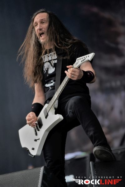 Pretežno mehke tone do pete popoldan prvega dne festivala, so dokončno brez usmiljenja prekinili ameriške legende Sna Francisco Bay Area thrash metala Exodus. S povratnikom Zetrom na vokalu, so Exodus končno znova tisti res pravi. No ja. Manjka seveda Gary Holt, ki pa kot del zasedbe Slayer, že lep čas nima več časa za stare kamerade. Kakorkoli, kitarska naveza Kragen Lum in Lee Altus (s Scorpions majico – kakšno »skrunjenje« za pravega thrash metal »die harda«), sama po sebi vzbuja sline. Po nasnetem uvodu Call to Arms, je bend prešel v delno v izvedbo Funeral Hmyn, potem pa uvodni del prelil v novo Blood In, Blood Out iz istoimenskega in skupno desetega studijskega albuma, ki je izšel leta 2014. Hitro gre čas fantje, kdaj boste posneli novega? To niti ni važno, bend, ki je bil ustanovljen davnega leta 1979, je v osemdesetih zapustil neizbrisen pečat z albumom »Bounded By Blood«, repertoar pa obtežil torej prav s skladbami tega albuma: A Lesson In Violence, And Then There Were None, Deliver Us To Evil ter sklepnim šrapnelom Strike of the Beast. K temu dodaš Parasite iz albuma »Pleasures of the Flesh« ter »Fabulous Disaster« standard, ki nikoli ne manjka na pravi Exodus set listi, se pravi Toxic Waltz in vsi odgovori ležijo, kot na dlani. Exodus so nezlomljiva utrdba najbolj pravoverne šole thrash metala in njegovi prvi branitelji ostajajo tudi v letu 2018. Zetro je neverjeten komik, obenem pa zna pokazati tudi svoj pravi »badass« značaj nebrzdanega pobalina. Vokalno stare skladbe perfektno funkcionirajo s Zetrom. Ljudem se je trgalo in jasno je, da je šlo za koncert, kjer so možne med udeleženci tudi resne poškodbe. Kar nekaj ljudi je po koncertu iskalo kose oblačil in obuval, avtor prispevka, pa ne trzalic, pač pa svojo uro. Mosh pit na mosh pit. Zetro je to zahteval. Zahtevala je to energija izjemnih riffov, izjemne agresije, ki so jo, kot kasetne bombe polne napalma, vseskozi posuvali nad Balingen Exodus. Bend ni obšel niti še ene izredno dobre studijske plošče »Tempo Of The Damned« (2004), ko se je lotil točke Blacklist. Kot povedano. Legende, ki ostajajo velike legende tudi na odru. Strupeni valcer in ekspresna poštna dostava, naravnost v pekel! Brezkompromisno. Upajmo na njihovo čimprejšnjo vrnitev v Evropo. Na klubske špile seveda!