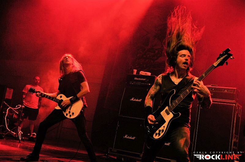 V dvorani je ura in pol minutaže pripadla izvrstnim death thrash metalcem iz ZDA Skeletonwitch. Bend ki je na sceni petnajst let in s šestimi studijskimi albumi v žepu, se je zapisal v srca ljubiteljev prvovrstnih riffov, odličnih solaž, za katere skrbi kitarski dvojec Scott Hendrick in Nate Garnette, kakovostnih albumov ter nastopov. Pred kratkim so menjali pevca Chancea Garnetta za Adama Clemansa in mnogi so mislili, da Skeletonwitch ne bodo več tisti pravi. Novi album »Devouring Radiant Light« je zanimivo, izšel prav v vmesnem času. Torej v dneh po nastopu na Bang Your Head!!! festivalu ter tik pred nastopom skupine na Metaldays festivalu, kjer smo torej prestregli skupino v letošnjem poletju na odrih kar dvakrat. Bend je torej že globoko v predstavitvi novega albuma, prvega z novim pevcem in kar je najbolj važno. Zelo dobrega novega albuma, ki je smiselno nadaljevanje EPja »The Apothic Gloom«, s katerim so odprli koncert (skladba Red Death, White Light). Sicer sta omenjena sveža izdelka zastopala kar glavnino celotnega repertoarja, ob tem pa skupina ni obšla predhodnika »Serpents Unleashed«, ko je zaigrala kmalu na začetku I Am of Death in z omenjenim albumom tudi sklenila koncert (sklepni This Evil Embrace, Beneath Daed Leaves). Odlična komunikacija, neverjetna nazobčanost, fokus, suverenost in moč. Prevzetno in prav godilo je, da se je v programu končno znašla znova ameriška zasedba, ki se izdatneje opira na stare smernice thrash metala in ga oplaja z zloveščimi death metalskimi strukturami. Bend ni obšel niti starejših Beyond the Permafrost, The Horryfying Force (Desire to Kill) ter Gorge Upon My Soul in Crushed Beyond Dust. Pogubno in do konca toksično vretje (in cvretje)!