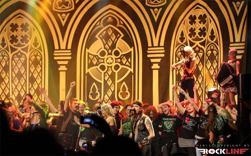 Z dvigom zastorja nas je pričakalo novo presenečenje. The Parkington Sisters so namreč kar ostale na odru, pridružili pa so se jim člani Dropkick Murphys. Menda je bilo v tem trenutku vsem v dvorani kristalno jasno, da se obeta nepozaben nalivaško veseljaški žur. Začeli so z udarnim komadom 'Hang 'Em High' z zadnjega albuma Going Out In Style. Udarno, na polno in v njihovem stilu, z zvoki bendža in škotskih dud. Nato so nanizali kar brez odmora, kot nekakšen medley, nekaj uspešnic z različnih albumov, kot so 'The Gang's All Here', 'Bastards On Parade', 'Going Out In Style'. Prvi pravi vrhunec večera pa se je zagotovo zgodil s tradicionalnim irskim komadom 'The Irish Rover'. Publika se je dokončno sprostila. Tudi sicer je potrebno večinoma mlajšo publiko pred odrom posebej pohvaliti, saj je bila tokrat res dobro razpoložena.
