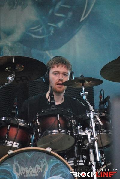 Mnogo lažje so ušesa sprejela tehnični death metal nemških veljakov Obscura, ki niso neznanci odrov Brutal Assaulta. Nemci so tako že dobro poznan bend, kar se je poznalo tudi na odzivu publike. Ta je štela že več sto glav, ki Obscure niso pustile nas suhem, zasedba pa je na oder prikorakala ob zvokih rušilne himne aktualnega albuma Omnivium, Septuagint in nas s prvimi toni pahnili v vrtinec prvovrstnega tehničnega death metala, ki je zrastel na koreninah bendov kot so Cynic, Death in Atheist. Nemci so kljub nekoliko slabšemu, zapacanemu zvoku dokazali, da so trenutno v samem vrhu žanra progresivnega death metala in s konstantno koncertno in studijsko formo bodo ta vrh zlahka tudi osvojili. Obscura je s številnimi odigranimi koncerti v zadnjih nekaj letih postala utečen in uigran odrski stroj v katerem ni prostora za napake. Oči in ušesa napajajo predvsem spektakularne solaže izpod prstov genialnega Christiana Muenznerja in fantastični razgibani in pestri rifi, ki si jih podaja s šefom benda Steffenom Kummererjem (z obupno novo hipstersko čupico). Steffen je tokrat še bolj kot poprej dokazal, da postaja odličen frontmen, ki zna vzpodbuditi publiko in učinkovito povezovati program. Nič slabše se ni odrezala ritem sekcija, prej nasprotno, saj je Hannes Grossman tudi z inovativno bobnarsko solažo dokazal, da je eden najboljši modernih ekstremnih metal bobnarjev. Basist, ki je stopil na mesto Jeroena Paula Thesselinga, Linus Klausenitzer (Noneuclid) je tehnično odlično podkovan, svoje delo je opravil z odliko, v zasedbo se je že popolnoma vklopil, vendarle pa sem na trenutke močno pogrešal fenomenalni zvok Jeroenovega slajdanja po fretless bas kitari. Tokrat so Obscura odigrali viharno setlisto sestavljeno iz mojstrovin z albumov Cosmogenesis in Omnivium, v spomin so se tokrat vtisnile predvsem rušilna Incarnated, totalen Morbid Angel »worship« z Ocean Gateways ter zaključni Centric Flow, ki z daljšim inštrumentalnim zaključnim delom vedno predstavlja epski konec in nič drugače ni bilo tudi tokrat.