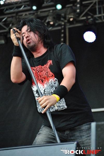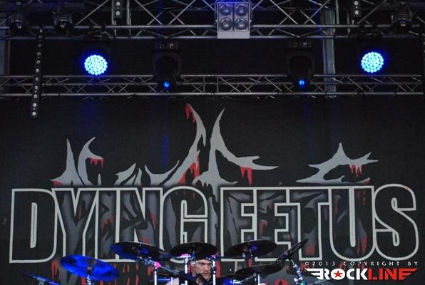 Pred oder nas je v poznem popoldnevu znova prignala želja po moriji mamic in sodomiji kužkov, ali kot bi rekla klasika legendarne ameriške death metal zasedbe iz Marylanda, Dying Fetus – Kill Your Mother, Rape Your Dog. Američani, ki so zadnje čase na neustavljivem koncertnem pohodu so uprizorili enega boljših koncertov festivala, znakov usihanja trio preprosto ne zna pokazati. Bend se bliža 20. obletnici svojega delovanja in to zgolj zaradi neumorne volje edinega še originalnega člana Johna Gallagherja. V zasedbi se je namreč v vseh letih zamenjalo toliko članov, da zmanjka vseh prstov, da bi jih prešteli, danes pa Dying Fetus nastopajo kot trio. Kar pa se Gallagherju, Seanu Beasleyu (bas) in Treyu Williamsu (bobni) niti malo ne pozna. Bend je lani izdal eno boljših plošč svoje kariere, Reign Supreme, in oder je pod težo nasilnih rifov eksplodiral že po prvih toni, ki so dokazali, da lahko le trije posamezniki proizvedejo hrup Velikega poka. Uigranost zasedbe je fenomenalna, prostora za napak pri Dying Fetus preprosto ni, pa čeprav znajo biti fantje hudo kompleksni. Zvočna slika benda je bila popolna! V ospredje je bilo porinjeno nečloveško Williamsovo bobnanje z vso paleto do potankosti izdelanih prehodov in hudičevo hitro brcanje po bas bobnih. Gallagher je medtem skrbel za sekljanje in rezanje s fantastičnimi riffi in peklensko dobrimi solažami, ki pa jim je zlahka, z neverjetno spretnostjo sledil Beasley z "blunt force" basiranjem, dvojec pa je poskrbel še za demonični vokalni duet. Gallagher je s tem, da je letos nadomeščal Franka Mullena v Suffocation, očitno izboljšal tudi svoj položaj frontmena, saj ne stoji več le kot lipov bog, pokaže malo več gibanja, boljša pa je tudi komunikacijo s publiko. A vendarle Dying Fetus časa niso izgubljali z odvečnim besedičenjem, temveč so prišli, odigrali in šli.