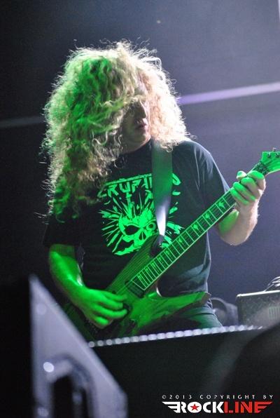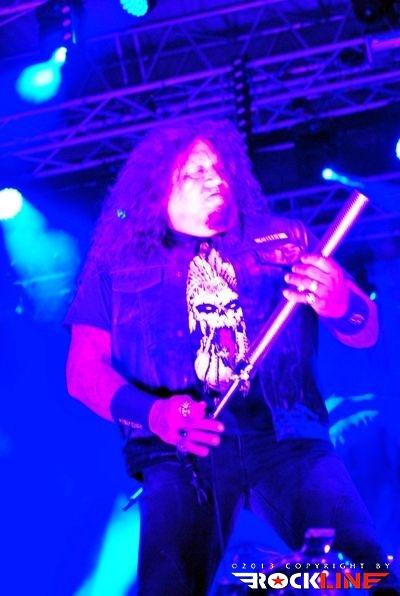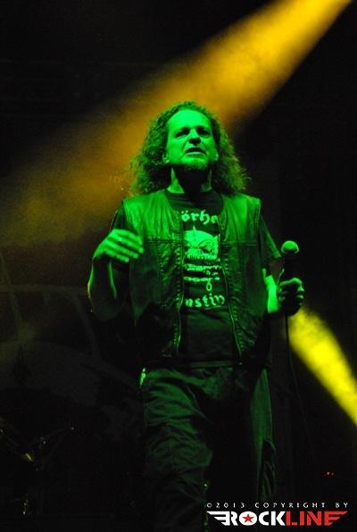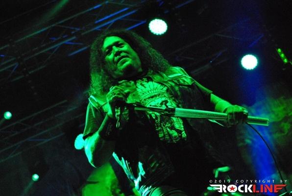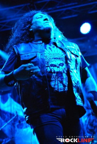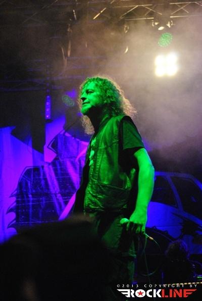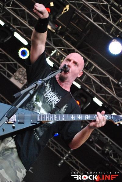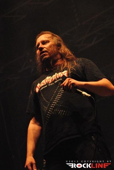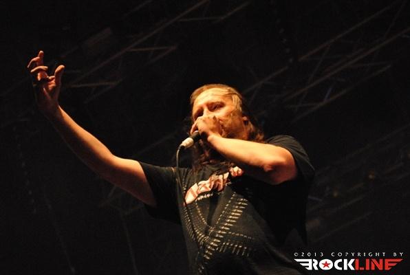 A resnični razlog za obisk sredinega ogrevanje so bili ameriški thrash težkokategorniki Testament, ki s svojim delovanjem po izdaji »come-back« albuma The Formation of Damnation za seboj v oblaku prahu zlahka pustijo (samooklicano) veliko thrash četverico. Dokaz za to je odlična, še aktualna plošče Dark Roots of Earth ter energični in eksplozivni koncerti, ki jih Chuck Billy in njegovi thrash tovariši nizajo kot za stavo. Tak bi moral biti tudi koncert na Brutal Assaultu, pričakovanja, ki so bila velika, pa so se kot milni mehurček razblinila že s prvimi odigranimi toni. Ne samo, da je bil zvok tako slab, da se je Testament na velikem odru zlahka dalo zamenjati s slabim češkim grind bendom v lokalni beznici, bolj žalostno je bilo to, da je bend deloval kot, da je na slabi vaji. Razočaral je predvsem »chief« Chuck Billy, ki je pel resnično slabo in neprepričljivo, besede je kaj požiral, povrh vsega pa je pozabljal še besedila. Če je inštrumentalno zasedba še zvenela svojemu imenu primerno, pa je bilo čutiti, da so Testament koncert vzeli povsem z levo roko ali pa se zaradi slabega zvoka niso niti potrudili odigrati tako kot se zagre (fušala je celo pregovorna nezmotljiva atomska ura, bobnar Gene Hoglan). Zaradi izpete setliste, ki jo z izjemo komadov z nove plošče Testament gulijo že leta je zares prepričal le brutalni Eric Peterson, ne le zaradi trdne ritem podlage, temveč predvsem zaradi razgibanih black metal vokalov, ki jih je v Testament očitno prenesel iz stranskega projekta Dragonlord. Upam, da za Testament velja, da tudi največjih včasih spodleti…