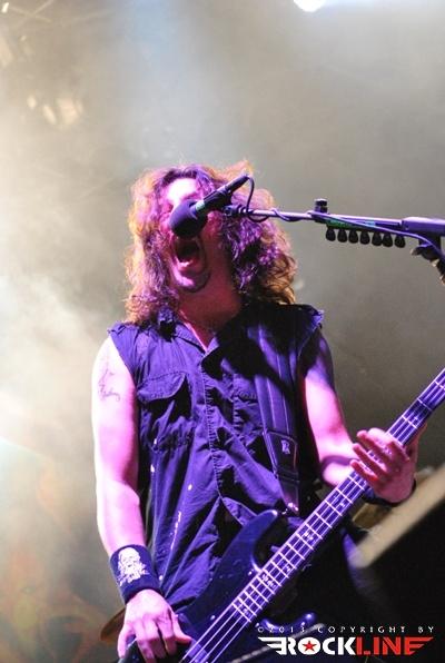 Festival prvi dan res ni šparal z obiskovalci, saj so gromozanska imena nizali druga za drugim. Tik po Gojiri so oder namreč zasedli newyorški velikani thrash metala Anthrax, ki jih je predlani izdana plošča Worship Music znova vrnila med žive. Veterani so odigrali enega najboljših koncertov festivala in s takim delovanjem v prihodnosti si bodo zlahka povrnili ime največjih, ki so ga z (ne)delovanjem v devetdesetih povsem izničili. Worship Music je pravi studijski povratek skupine, energijska bomba pa so Anthrax tudi v živo. Zasluga gre predvsem hiperaktivnemu frontmenu Joeyu Belladonni, ki je poskrbel tudi za izjemno vokalno predstavo. Belladonna se lahko pohvali z resnično ohranjenim vokalom, od muh pa ni bila tudi inštrumentalna četverka. V bendu se je že udomačil kitarist Jonathan Donais (Shadows Fall), ki je zamenjal pobeglega Roba Caggiana, lepo pa je bilo videti odrsko živost Franka Bella, čigar čupanju in tekanju po odru ni bilo videti konca, dobro pa se je obnesel tudi Jon Dette, ki na bobnih nadomešča Charlieja Benanteja. Do tukaj vse lepo in prav, a setlista Anthraxov si zasluži en velik minus, saj si bend s takim opusom takih mimostrelov ne bi smel privoščiti. Ok, Got the Time in Antisocial sta že ponarodeli Anthrax himni in nihče več niti ne ve, da to nista njihova avtorska komada. A zakaj je bilo treba vmes tlačiti brezvezni T.N.T. in Long Live Rock 'n' Roll, ki se od originalov niti razlikujeta ne preveč, mi ni jasno. Kljub rahlo grenkemu priokusu zaradi polnjenja minutaže, so bili Anthrax lepo presenečenje in prava thrash lekcija.