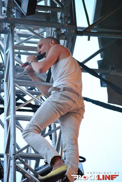 Tudi nadaljevanje je bilo glasbeno bolj borno, saj so sosednji oder v valove okrancljali ameriški lepotci Trivium, ki so na festivalu nastopili prvič v zgodovini. Oder je torej ponazarjal valove, v skladu z naslovom aktualne plošče In Waves, tudi glasbeni vtis njihovega nastopa pa je bil povsem v stilu – nekako kot, da bi fasal glasbeno morsko bolezen. Fantje s Floride so se na odru sicer izkazali za zelo energičen band, tudi njihovo igranje nikakor ni od muh, saj so tehnično izredno podkovani, dvojne solaže in dueli kitaristov Matta Heafyja in Coreya Beaulieuja zares trgajo, tudi ritem sekcija ni od muh. A kaj ko vse skupaj zveni suhoparno, generično, tehnično resda osupljivo igranje pa že meji na kitarski »wankery«, ki bi se dobro prilegel kakšnemu Nintendo špilu. Glasba je tako popolnoma neoriginalna, če se fantje izkažejo pri pisanju norih supersoničnih solaž, pri odstopanju od thrasherskih smernic, ki jih je postavila Metallica in melodike, ki jo zastopajo Iron Maidne, ne odstopajo za veliko, vse skupaj le zapakirajo v bolj moderno preobleko. Tudi pri vokalnem udejstvovanju bi Trivium lahko pozabili na trende današnjega metala. Menjavanje gruljenja in clean petje refrenov je že stokrat slišano in prežvečeno, dvojni vokali Matta in Coreya pa naravnost smešni »cookie monster« vokali. Da ne govorim o čistih vokalih, ki zvenijo kot Caught In the Act. Trivium so v dobri uri odigrali tudi Brave This Storm in Strife s prihajajoče plošče Vengeance Falls, ki pa zvenita tako kot vse ostalo. Zanič. Še najboljši del Trivium seta je predstavljal intro pobran iz soundtracka Final Fantasy VII: Advent Children in kdor trdi, da naj bi bili Trivium dostojni nasledniki bendov kot sta Iron Maiden in Metallica, naj naredi sledeče: 1. Neha poslušati metal, 2. Vzame nekaj ostrega in zatlači globoko v bobniče.