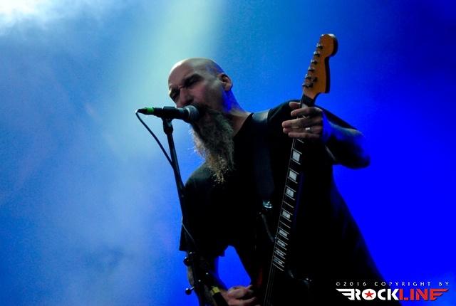Ameriški težkokategorniki Mastodon so bili največje headlinersko ime prvega dne, a so svoj status upravičili le deloma. Sprva je ponagajal obupno slab zvok, ob katerem so Mastodon zveneli kot pokvarjen radio v majhni kopalnici, a je očitno tonski mojster pozabil vklopiti polovico zvočnikov, saj se je zvok končno, a šele po skoraj polovici koncerta, popravil med spevnim hitičem High Road. Velika škoda, saj klasik kot sta bili pred tem odigrani Blasteroid in Oblivion skorajda ni bilo moč razpoznati. Ko se je zvok le popravil pa je celotno podobo skazilo še precej fušanja in kiksanja pri večglasno odpetih delih in povsem mimo odkričani deli za katere skrbi živalski Brent Hinds. Če zanemarimo njegovo vokalno udejstvovanje je Hinds sicer navdušil z vražje odsoliranimi deli. Še bolj pa s čudovito belo srajco z resicami, hehe. Vokalne dolžnosti so nekoliko mučile tudi bobnarja Branna Dailorja (najbolj se je matral med Ember City), a njemu je pol odpuščenega, saj po bobnih zares lomasti kot kakšen Leviatan. Še najbolje se je tako odrezal odlični Troy Sanders, a je bilo tokratni koncert Mastodon nekakšna srednja žalost, rahlo pa je zmotilo tudi to, da je skoraj pol odigranih komadov prihajalo z aktualne plošče Once More 'Round the Sun, ki ni ravno presežek.