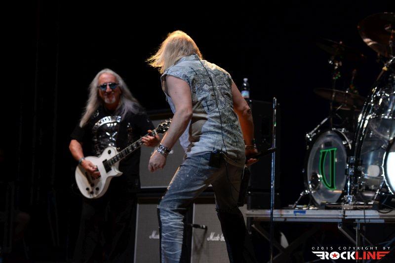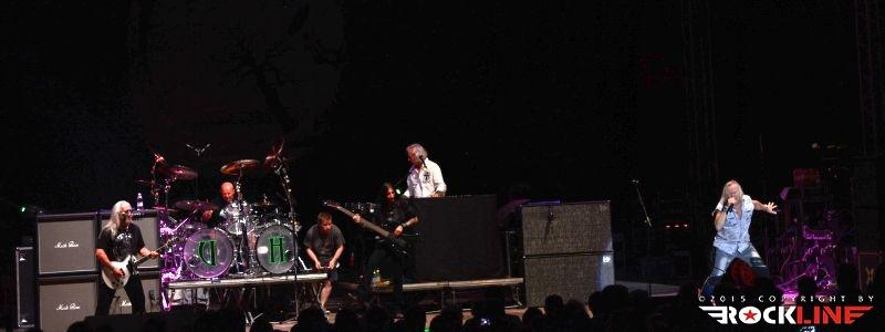 Uriah Heep v postavi Bernie Shaw (vokal), Mick Box (kitara, spremljevalni vokal) , Phil Lanzon (klaviature, spremljevalni vokal), Dave Rimmer ( bas kitara, spremljevalni vokal) in Russell Gilbrook (bobni, spremljevalni vokal), predstavljajo tudi na poletnih nastopih letošnjega leta še vedno aktualni novi studijski album »Outsider«, ki je izšel v lanskem juniju. Bend je krenil na oder natanko ob 22.00 uri in sozvočju noveag albuma tudi odprl koncert z novo skladbo Speed of Sound na čelu z bobnarskim intro vložkom »pobesnelega« Russella Gilbrooka. Zvok je v začetku nekoliko šepal, zlasti je štrlel v ospredje zvočne slike bas Davea Rimmerja, a so zvočni tehniki zadevo hitro uravnovesili na ušesom prijazni zvočni nivo.