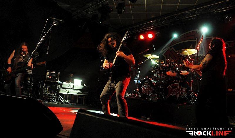 V naslednji uri in 40 minut, pa so z glavami naposled zamikastili oboževalci zasedbe Death, ki se jih je nabralo v lepem kosu 500 obiskovalcev in so s kvartetom izvrstnih glasbenikov, kaj hitro izgubili zdravo pamet in razum. Death To All so odprli koncert že takoj z izredno The Philosopher ter uvodoma naznanili, da bo set lista obtežena s komadi albuma »Individual Thought Patterns«. O uigranosti ne gre izgubljati besed. Ta je jemala dih. Zvok izvsten, seveda če si stal 15-20 ali več metrov stran od odra in to na sredini. Sicer si lovil na uho preveč desne, ali leve kitare. Štirje individualisti, tehnično brezhibno izpiljenih vrlin, izrednih veščin obvladovanja instrumentov, polnokrvna mera virtuoznosti, neverjetne demonstracije kompleksno izvedenih partov, razvoj peklenske hirosti, demonstracija najbolj surove in pristne energije, ki ga zaobjema poslanstvo floridske šole death metala. Stara šola torej. Brez lepotnih kozmetičnih popravkov temelječih na efektih za katerimi bi se skrival kvartet. Bend je med točkami potreboval daljše premore, da je uglasil instrumente, si vzel čas za polno koncentracijo, saj kot že povedano, izvedba zapuščine Death, zahteva popono finomehaniko. V takšnih trenutkih je stopal v ospredje Steve DiGiorgio, ki je izkoriščal svoj prirojeni smisel za zabavljaštvo in »delil bombončke« publiki, se pravi razdelal nekaj humoresk, anekdot in spravil publiko, da je za njim preko koncerta nenehno ponavljala »globokomiselno skovanko visoke duhovno čustvene inteligence«, dveh dodobra zasidranih besed »Porko dio«. DiGorgio je prevzel vlogo šefa v kvartetu. Tudi med izvedbo se je večkrat sprehodil z leve na sredino in proti desni strani odra, ko je vihtel svoja šest in tristrunska fretless basa. Tristrunski bas je vpet na vratu za pet strunski bas.