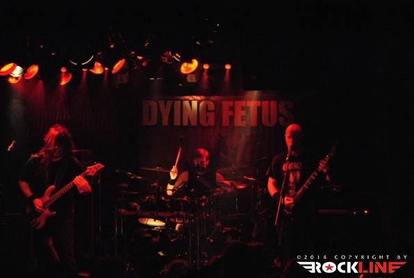 Trnovo krono na glavo pa so tudi tokrat predstavljali neustavljivi Dying Fetus, ki že dve leti in pol predstavljajo odlični album Reign Supreme. Čeprav so zadnjih nekaj let pogosti gostje naših odrov, pa so tudi tokrat dokazali zakaj v njihovi družbi nikoli ni dolgčas. Peklenski death metal trio je znova potrdil status velikanov ekstremnega metala s tem, da so v Galo halo pripeljali orkan tehničnih rifov, divjih arpeggio solaž, nečloveškega bobnanja in zverinskih vokalov dvojca John Gallagher in Sean Beasley. Tudi tokrat je Gallagher bolj malo govoril, a je besedičenje nadoknadil s kirurško natančnim igranjem in živalsko krulažo. Dying Fetus so v slabi uri in pol ponudili nekakšen best of set, mosh pite in stage dive pa so razplamteli predvsem ubijalski »hiti« a la Second Skin, From Womb To Waste, Subjected To A Beating in večna himna Kill Your Mother, Rape Your Dog. Edina slabost Dying Fetus? Znova so tehniki očitno pozabili priklopiti Beasleyev bas. Razgibavanje njegovih prstov po vratu kitare že resda izgleda osupljivo, a kaj ko se še vedno sliši le občasni »lick« ali dva. A ne glede na to, Dying Fetus še vedno vladajo suvereno.