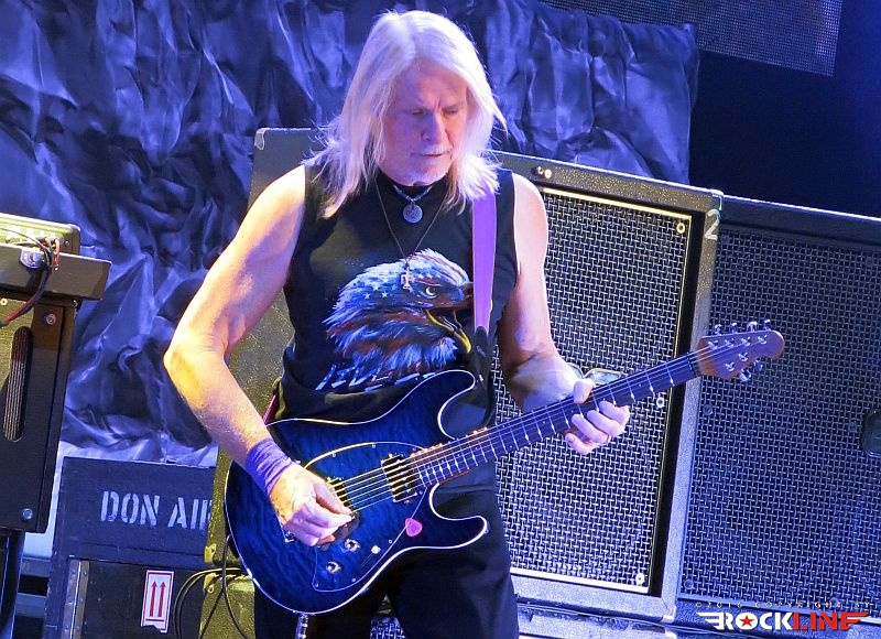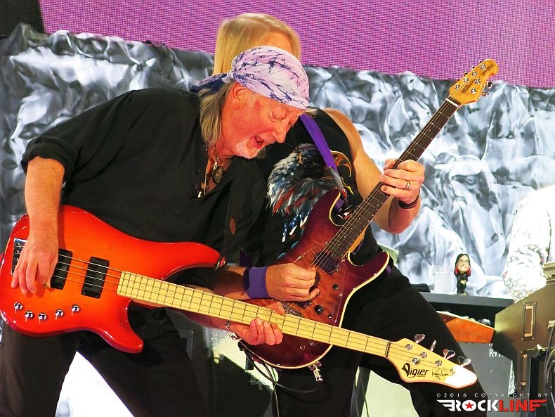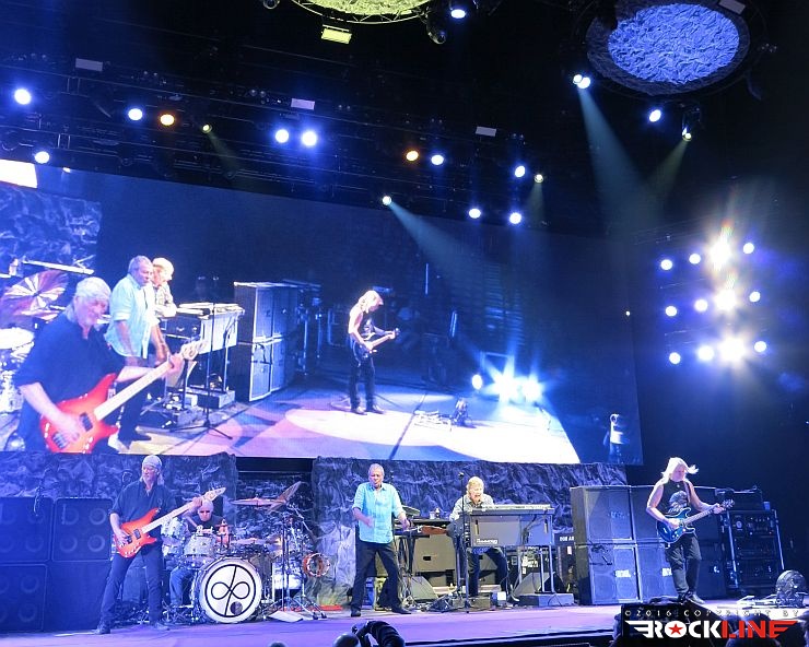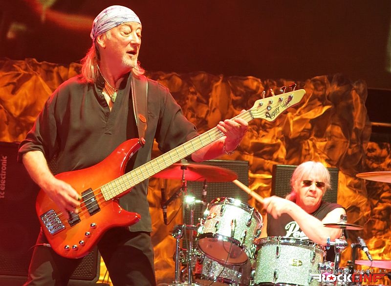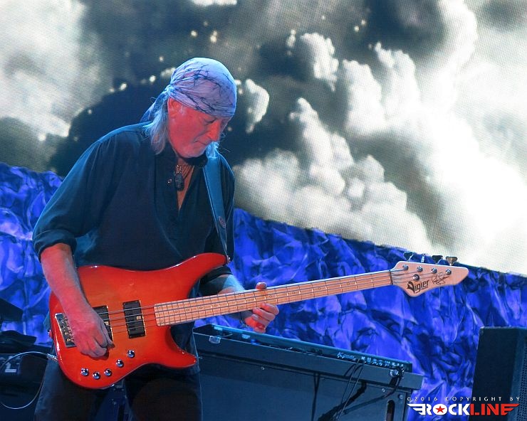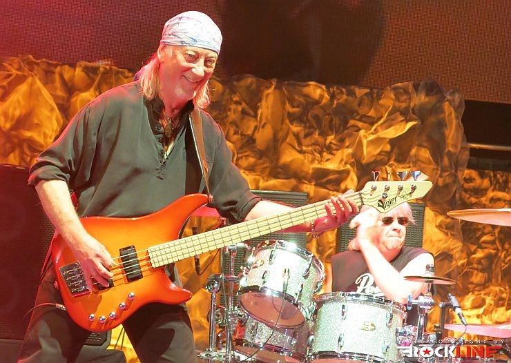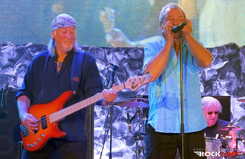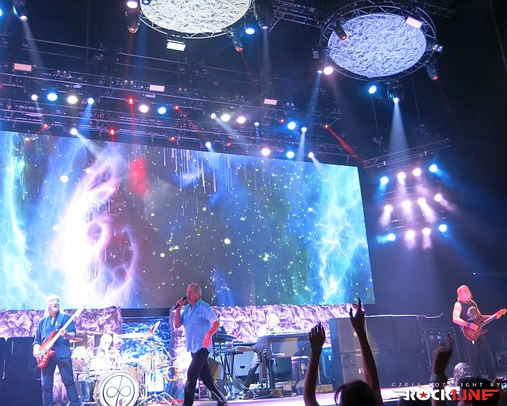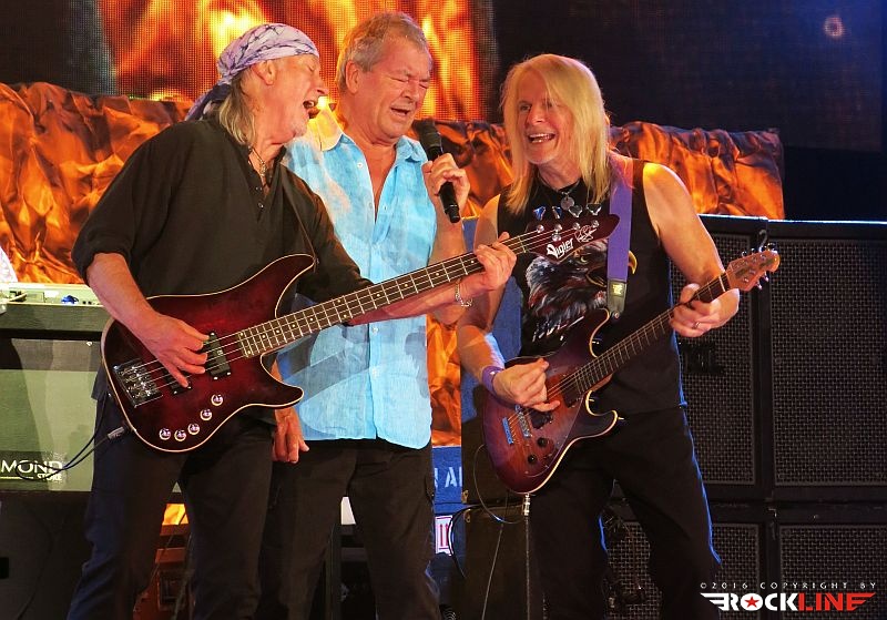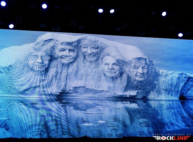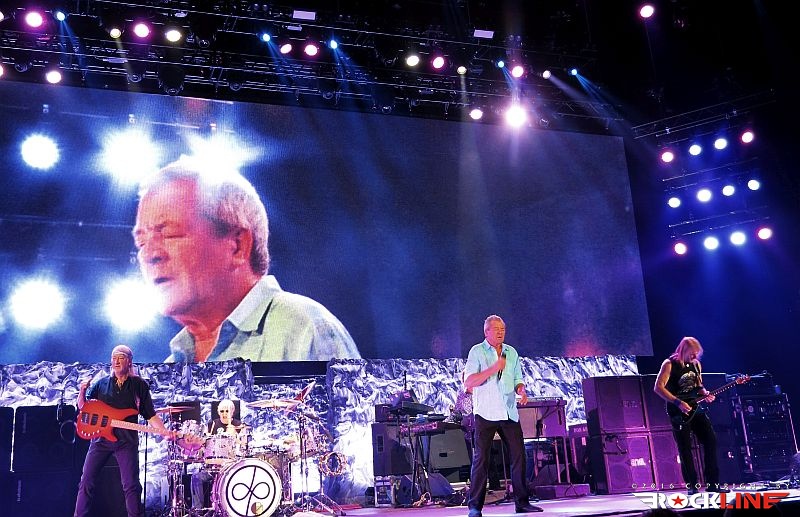 Deep Purple so presenetili še preden se je band sploh pojavil na odru, saj so poskrbeli za impresivno odrsko scenografijo s kar tremi veliki zasloni za bogate projekcije, ki so spremljale izvedbe posameznih del. Najprej so nas navdušili z domiselno grafično podobo ledene gore z isklesanimi obrazi članov banda, ki je bila več kot očitno posvetilo njihovemu kultnemu albumu »Deep Purple in Rock« iz leta 1970. Nezlomljivi rockerji so naposledi prokorakali na oder ter udarili na polno z novo skladbo, »Time for Bedlam«. Legendarni pevec Ian Gillan, je bil v tem večeru v odlični formi, če se upošteva njegova leta in dobro znano dejstvo, da že dolgo ne more več peti vokalno zahtevnejših pesmi kot je denimo »Child In Time«. Nič manj legendarna Roger Glover na basu in Paice na bobnih sta bila prav tako zelo dobro razpoložena na svojih inštrumentih, sicer pa jima že vrsto let ne zmanjka prešernega razpoloženja. Kitarski virtuoz Steve Morse in klaviaturski čarodej Don Airey pa sta že dolgo motorja trenutne ekipe, kar sta dokazovala na vsakem koraku, ne samo med epskimi solo točkami, ki na Deep Purple koncertih že po tradiciji nikoli ne manjkajo.