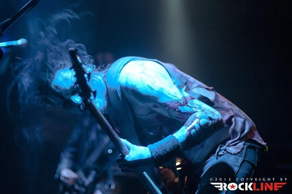 Sledila je pavza, čas za pivo ter menjava benda in nastop NOCTURNAL DEPRESSION. Iz tišine (razen glasbe, ki se je predvajala v ozadju) so užgali hitri "soundcheck" in takoj sem vedel kaj nas čaka v nadaljevanju. Tako se je okrog desete ure zaslišal že drugi intro in francoska trojica je udarila s t.i. pravim Black metal uvodom v komad! Na kitari zvok poln visokih tonov, distorziran zvok basista, ki se združita v šumenje in bobnar na 200 bpm, ter visoki screami na vokalu, so nam dali vedeti, da zdaj še ni čas za spanje. Po dvorani je "šumelo in ropotalo" skratka pravo Black metal vzdušje, kar je bilo videti tudi na publiki, ki je na polno ogreta s čupami poskrbela za ventilacijo nastopajočim. Komadi so streljali iz enega v drugega, skratka NOCTURNAL DEPRESSION so ga žgali na polno. Njihov kitarist je bil fenomenalen, saj se je po kitarskem vratu sprehajal hitro in natančno kljub deformirani levi roki, ki je zgledala kot nekašen "Satan's hoof". Skratka noro in svaka mu čast za riffe, ki jih je drgnil! Poleg kitarista s svojim Satan's hoof je za nenavaden performance poskrbel njihov basist s svojimi grimasami in pogledi v reflektorje (morda jih je štel ali pa je preverjal osvetlitev). V celoti gledano, pa je bil nastop NOCTURNAL DEPRESSION povprečen, kajti zgradba in izvedba komadov je bila precej monotona, kar pa je odlična "formula" za Black metal.