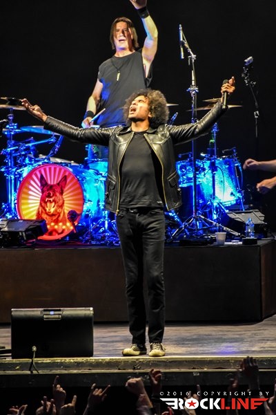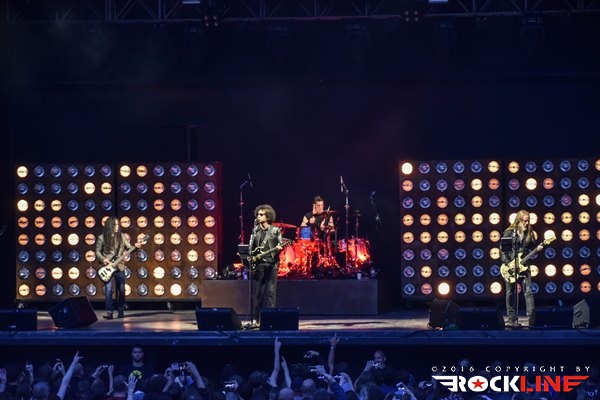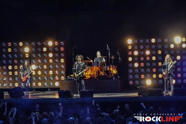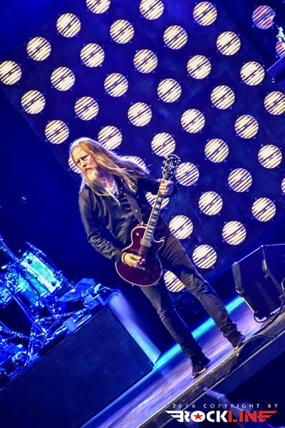 Po dobre pol ure je bil oder za velike zvezde večera le pripravljen in na oder so drug za drugim, brez kakšnih pompoznih uvodov prikorakali Jerry Cantrell, William DuVall, Mike Inez in Sean Kinney. Prijemanje inštrumentov je spremljalo le huronsko navdušenje publike, ki je štela nekje med tri in štiri tisoč glav, glasnost pa je le še okrepil avditorij oblikovan v stilu amfiteatra. Od bučanja publike so se dvigovale kocine, telo pa se je v celoti naježilo že s prvim komadom Bleed the Freak, ki je bil že sam po sebi mini vrhunec. Duh uporništva preveva to Cantrellovo stvaritev, ki je v duhu enotnosti za dve uri združila tudi valujočo publiko, ki je bendu od prve sekunde dalje jedla iz rok. In to povsem upravičeno, saj je bila predstava na odru vrhunska, brez ene same napake, a kljub temu odigrana s srcem in prepričljivostjo, ki se je, ne dvomim, dotaknila slehernega prisotnega pod zunanjim odrom dunajske Arene. AiC so kot drugega ponudili enega od dveh odigranih komadov s »come-back« albuma Black Gives Way to Blue, Check My Brain z nalezljivim refrenom, ki ga družno odpojeta Cantrell in DuVall ter zgradita edinstveno in bogato vokalno harmonijo, za katero je še gluhemu jasno, da lahko pripada le in edino Alice in Chains. DuVall je svojo vlogo opravil z odliko, seveda z izdatno podporo vokalno prav tako močnega Cantrella, ki obenem skrbi za nekaj najbolj prepoznavnih in unikatnih rifov v vsej zgodovini rock glasbe. To so fantje dokazali s klasikami Again, Them Bones in Dam That River pa tudi s sludgerskom zvenečim Hollow, kjer še posebej do izraza pride globok in rušilen zvok debelih Mikeovih bas linije, ki imajo v AiC, kljub relativni preprostosti še kako pomembno vlogo. Med nepozabno himno izgubljene generacije, Down in a Hole, ki jo Cantrell sicer napisal svojemu dekletu, so prvič zagoreli vžigalniki, izjemna izvedba pa je znova povzročila mravljince od pet do glave, glasilke pa so bile že po dobri tretjini koncerta povsem hripave. Prav tako kot med klasiko No Excuses, pa The Devil Put Dinosaurs Here "teženjem" Stone in izrednim We Die Young.