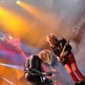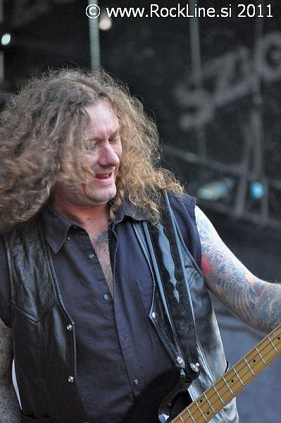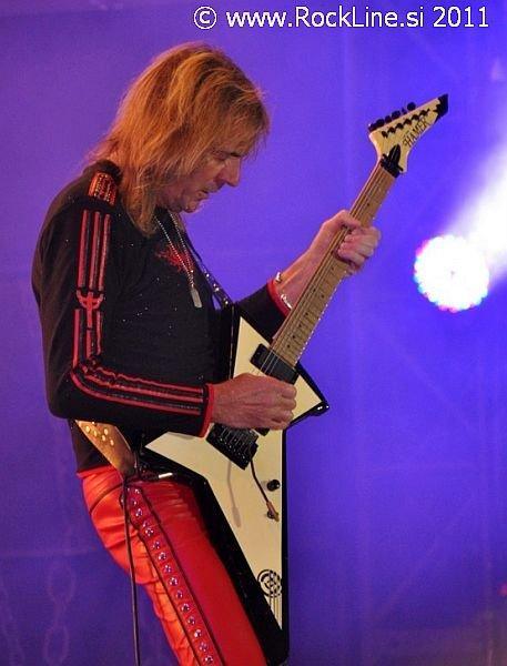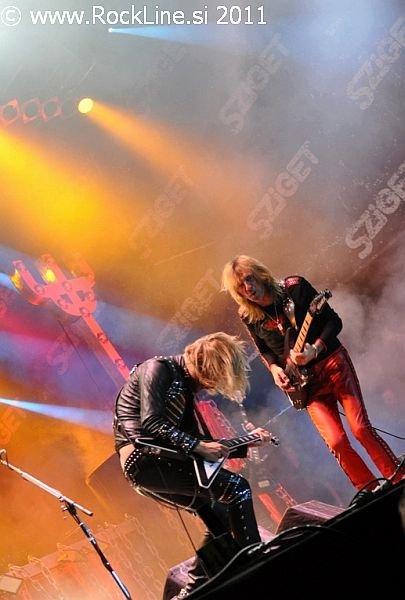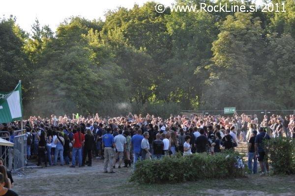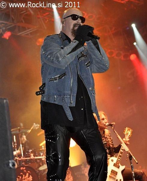 Helloween sodijo tudi med legende danes. Utemeljitelji evro power metala. Vseeno pa je tudi ta nastop pokazal s pričetkom ob 19.00 uri, da je barka zasedbe precej zguljena in paluba razmajana. Helloween namreč na odru v letu 2011 ne sevajo nikakršne svežine, nikakršnega naboja, nikakršne sle po nastopanju. Delujejo rutinirano in tudi njihova rutinska podmazanost velikih simpatičnih "igralcev mnogoterih likov", ne funkcionira več učinkovito v maskiranju. Prej razkriva blamažo. Prelahko jih je prebrati. Ustaljeni repertoar z dvema novima skladbama, pričakovani zaključni trojček najbolj znanih skladb (Dr . Stein, Futire World, I Want Out), medley najdaljših Helloween skladb in seveda prijetni klasiki March Of Time ter I'm Alive. Andi Deris je znova prodajal publiki oguljene fraze, kot jih prodaja že od januarja letos, ko je stekla po Evropi headlinerska turneja skupine. Britje norcev na račun vselej pijanega bobnarja, nenormalno dolgi nagovori, kot si jih ne privošči prav nobena skupina danes razen občasno Manowar, s katerim ubija atmosfero in mrtviči vzdušje. Vsega tega je preveč. Neverjetno je to, da nakljub temu, publika še vedno polno sprejema Helloween predstave v letu 2011. Do kdaj se bo pustila tako lahko voditi razvajeni in vsega siti nemški skupini pa je vprašanje, ki ga pozna le odgovor skrit nekje v oblaku prihodnost. Tudi preostali del kvinteta deluje povsem nevživeto in ne le Andi Deris. To letu zlasti na rovaš obeh kitaristov, pri čemer Gaersnter kar tekmuje v tem, da bi ga razglasili za najlepše dišečega kitarista na svetu, medtem ko je "Weiki" že prav nemarno nadležen in vsiljiv s spakljivimi pogledi in enonožnimi lastovkami med koncertom. Upajmo, da si skupina vzame dalj časa za premor in da razmisli o tem, ali sploh še igra z užitkom, ali le še za to, ker jo pač k temu žene denar. Res, da je Andi Deris zadnje leto šibak na zdravju, pa vseeno. Če lahko stoji na odru, pomeni da je zdrav dovolj in telesno dovolj dobro pripravljen za petje. A žal je občutek tak, da zadnje čase bolj govori na odrih, kot poje. Žal beseda ni meso postala.