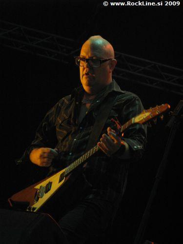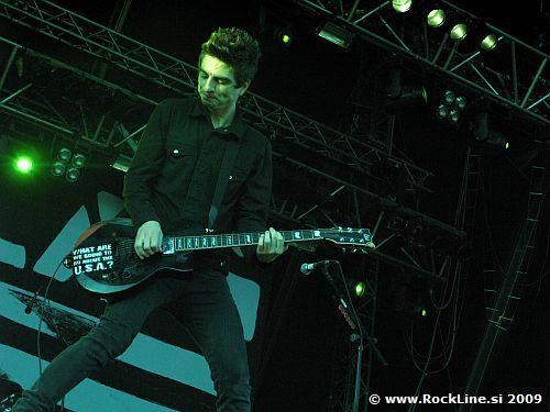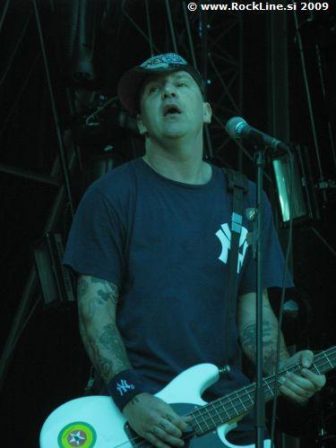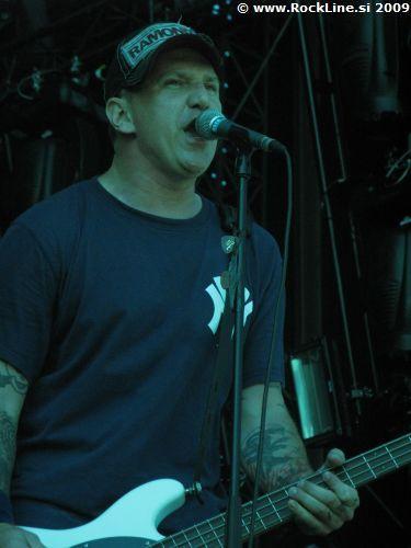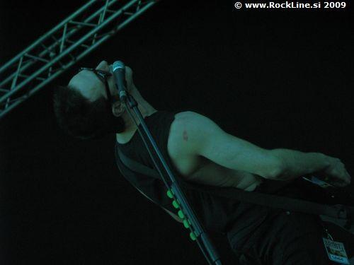 Anti-Flag so zagotovo ena zanimivejših zasedb na ameriški glasbeni sceni. Politično opredeljeni novodobni punkovci za svoj obstoj štejejo leto 1988, čeprav se je formacija do leta 1993, ko so pričeli z resnim delom, še nekajkrat spremenila. Zasedba, katere člani so bodisi vegani bodisi vegetarijanci ter borci za pravice živali in organizacije PETA, je letošnjega junija izdala svoj deveti studijski album "The People Or The Gun", s katerega so fantje zaigrali le dve skladbi in sicer "Sodom, Gomorrah, Washington D.C. (Sheep In Shepherd's Clothing)" in "The Gre(a)t Depression". V ciklus zaigranih pesmi je četverica vpletla večino svojih starejših uspešnic in se sprehodila skozi vse odmevnejše ploščke. Kot prvi je tu "Mobilize" iz 2002 s pesmijo "Die For The Government", sledi mu "The Terror State" iz leta 2003 s skladbami "Turncoat", "Death Of A Nation", "Mind The GATT". Leta 2006 so fantje izdali "For Blood And Empire". Komadi, ki so zaznamovali ta plošček so "I`d Tell You But", "This is the End (For You My Friend)", "One Trillion Dollars", "The Press Corpse", "Cities Burn", vsi slišani na letošnjem festivalu. Pozabili niso niti na lanskoletnega "The Bright Lights Of America" s skladbo "The Smartest Bomb". V ciklus lastnih komadov so Anti-Flag vpletli tudi priredbo "Should I Stay Or Should I Go" angleških rockerjev The Clash, ki so delovali od sredine sedemdesetih pa vse tja do sredine osemdesetih let. Celodnevno pacanje na žgočem soncu je z Anti-Flag doseglo vrhunec in norije, ki se je začela z uvodnim rifom, ni do zadnjega ustavil nihče, četudi bi se še tako trudil. Le zakaj? Basist Chris Barker jo je še dodatno začinil, saj sej je podal na neverjeten "crowd surfing". Prava paša za oči! In tistemu, ki jih je nekaj dni pred festivalom zamudil tudi v Celju, je lahko pošteno žal.