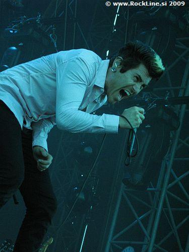 Po poplavi mladih in nadebudnih zasedb, ki so ta dan že nastopile na "race" odru, je navsezadnje prišel čas tudi za nekaj malce starejšega oz. bolj uveljavljenega. Američani A Fire Inside ali krajše AFI, ki so se začeli glasbeno udejstvovati v začetku devetdesetih, so do danes izdali sedem studijskih albumov, zadnjega "Decemberunderground" leta 2006 pri založbi Interscope Records, pri kateri bo čez slabih trideset dni izšel tudi njihov novi plošček, ki so ga gospodje poimenovali "Crash Love". Kljub njihovi dolgoletni prisotnosti na sceni so večji prebojni uspeh doživeli šele leta 2003 z albumom "Sing The Sorrow" (DreamWorks). Če so Davey Havok (vokal), Jade Puget (kitara, klaviature, programiranje, stranski vokal), Hunter Burgan (bas kitara, klaviature, programiranje, stranski vokal) in Adam Carson (bobni, tolkala, stranski vokal) do takrat prisegali na bolj surov hard core, se od tedaj na vse sledečih ploščkih poznajo sledovi komercializacije in želje po uspehu. Občutno vidneje kot kdajkoli prej. Iz pravih HC manijakov so se prelevili v povprečne cmere, kar poleg glasbe in videza dokazuje tudi srenja emoidnih dekletc in fantičev, ki se je zbrala pod odrom. Prav "Sing The Sorrow" je bil tisti prelomni plošček, ki je še razvajal ušesa s starimi dobrimi težkimi ritmi oz. skladbami "Girl`s Not Grey" in "The Leaving Song Pt. II", s katerima so AFI začeli svoj nastop. Sledili sta "Summer Shudder" in "Kill Caustic". Havok (v svetlo roza srajci in svetlečih srebrnih allstarkah !?!) je prvič ta dan pokazal svoje poženščene poteze. Te so se nadaljevale v "Days Of The Phoenix" z albuma "The Art Of Drowning" (Nitro, 2000), ki se malce očitneje spogleduje s temnimi punk ritmi. Povratek na eno njihovih najuspešnejših plošč je zaznamovala skladba "Silver And Cold", a se tudi z omenjeno niso mogli posloviti od albuma. Malce kasneje je tako sledila še "Dancing Through Sunday", ki je ponovno zanetila iskre med publiko. Kot balzam se je nato v ušesa usedla ena njihovih starejših skladb "A Single Second", in trenutek, ko Havok končno zakruli kot se za (nekdanjega) hardcorovca spodobi. Če povzamem kar naslov ploščka, na katerem je bil komad izdan: Shut Your Mouth And Open Your Eyes! Dobesedno! Proti koncu nastopa so se AFI posvetili zadnjemu ploščku, začenši z "The Missing Frame". Tej je sledila ena redkih priredb, ki jih je zasedba naredila. "Love Is A Many Splendored Thing" je nastala izpod peresa Paula Francisa Websterja, uglasbil jo je Sammy Fain. Kdaj? Daljnega leta 1955. Klasika v novi preobleki. Skoraj tako kot "Love Like Winter" ali "Miss Murder" z omenjenega ploščka, ki sta zagotovo eni večjih AFI uspešnic. Med obema je mesto pripadlo še komadu "Totalimmortal" z EPja "All Hallow`s EP" (Nitro, 1999), ki je kar malce razblinil naelektreno ozračje med zadnjima. Mnenja o tem, ali so gospodje navdušili, so deljena. AFI so tokratno play-listo posvetili vsem, tako starejšim kot malce novejšim oboževalcem. Za vsakega nekaj. A za nobenega niti delček pesmi s prihajajočega albuma. Kot kaže, bo na prvo poslušanje potrebno počakati do izida. Uradni datum: 29. september. Torej - kmalu!