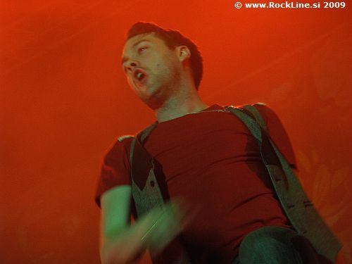 Čakanje je bilo poplačano. Kasabian so bili končno tu. Več tisoč glava množica je zasedbo pričakala z enim najglasnejših vzklikov tega večera, kar pa niti ne preseneča, saj je zasedba predvsem v zadnjem obdobju še kako vroča. Predvsem zaradi njihovega zadnjega, še čisto svežega tretjega studijskega ploščka "West Ryder Pauper Lunatic Asylum", ki je izšel v začetku letošnjega poletja pri založbi RCA / Columbia. Štiričlanska zasedba, ki je nastala leta 1999, je na izid samo-naslovljenega prvenca čakala dolgih pet let, nato pa dve leti zatem (2006) udarila še z drugim dolgometražnežem "Empire". Skupina, ki prihaja iz meke indie rocka - Velike Britanije, si je ime nadela po Lindi Kasabian, članici kriminalne družine Manson. Vendar skupina ni edina, ki so na kakršen koli način povezani z njimi. Trent Reznor, telo in duša Nine Inch Nails, je svoj album "The Downward Spiral" snemal v hiši, kjer so leta 1969 člani zloglasne kvazi komune pod vodstvom Charlesa Millesa Mansona umorili igralko Sharon Tate. Poimenovanje zasedbe po tako deviantni osebi se res da sliši srhljivo, a v njihovi glasbi ni nič spornega. Energija, ki se z odra prenaša na publiko, na trenutke rahlo spominja na tisto, ki se razvije med nastopom Rage Against The Machine, ko kljub temu, da si pri koncu z močmi, še vedno iz sebe izčrpaš največ. Zahvaljujoč seveda glasbi in izvajalcem, ki so na koncu premočeni prav tako, kot bi bili del publike. Kasabian so se že takoj v začetku posvetili svojemu tretjemu ploščku in svoj nastop začeli z "Vlad The Impaler", kateremu je sledil "Underdog". Kljub temu, da sta to dva popolnoma sveža komada, je bilo potrebno le nekaj rifov, da se je množica pognala v rajanje, ki se je z vsako naslednjo skladbo le še stopnjevalo. "Shoot The Runner", prvo zaigrano skladbo z "Empire", sta zaokrožili "Cutt Off" in "Processed Beast" z debija. Prav zadnji se je leta 2004 kot tretji singel povzpel na sedemnajsto mesto britanske lestvice singlov, a skupini žal ni prinesel prebojnega uspeha. Je pa to storil "Empire", takratni prvi singel, ki se je ustavil na desetem mestu omenjene lestvice. "Where Did All Love Go" je še ena najnovejša skladba, med katero se je publika prvič ta večer za odtenek umirila in se na približno istem valovanju obdržala še me "Take Aim" ter "Fire". Med novejše pesmi spada sicer tudi "Fast Fuse", a je publiki malce bolje poznan z male plošče, ki je bila na voljo le določenim trgom in ne širši javnosti. Čeprav je "počitek" dobro del, ni trajal dolgo. Kasabian so svoj nastop do konca odvrteli s polnim šusom. "The Doberman" je publiko ponovno spravil na delovno temperaturo. Norijo je še povečal "Club Foot", komad, ki ga je zasedba posvetila češkemu študentu Janu Palachu, ki je v znak političnega protesta storil samomor. Četverica, ki jo sestavljajo Tom Meighan (vokal), Sergio Pizzorno (kitara, stranski vokal), Chris Edwards (bas kitara) in Ian Matthews (bobni) je svoj nastop pripeljala do konca s skladbama "Stuntman" in "L. S. F. (Lost Souls Forever" z drugega oz. prvega ploščka. Tako kot mnogi drugi izvajalci, se niti Kasabian niso mogli upreti skušnjavi, da ne bi zaigrali kakšne priredbe. Gospodiči so se odločili za "You Got The Love", ameriške soul in gospel pevke Candi Staton, gospe s pravim imenom Canzetta Maria Staton. Vendar to ni nikogar motilo. Če so le Kasabian na odru! Priporočam!