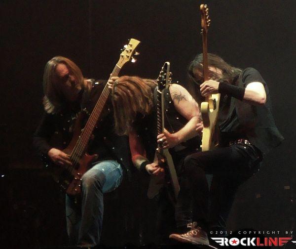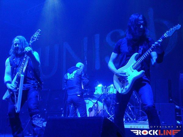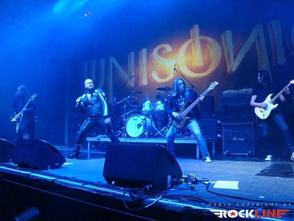 Dvojni program je udaril najprej s pretežno nemško navezo Unisonic. Pevec Michael Kiske in kitarist Kai Hansen sta iz Helloween, bobnar Kosta Zafirou iz Pink Cream 69, basist Dennis Ward prav tako, kitarist Mandy Meyer pa iz Asia, Krokus in Gotthard. Kiske je z Unisonic postavil izredno kompetentno zasedbo, ki svoj prvenec suvereneo postavlja na hard rockovsko bojno polje. Že EP, ki je januarja 2012 najavil album, je bil razprodan. Če dandanes ne moremo govoriti o izredno velikih nakladah, pa po tem dejstvu vemo, da so vsi izvodi prišli v prave roke. Unisonic so v živo delovali v skladu z imenom, torej vsi v en glas. Pri izvedbi ne morem najti slabe točke. Za Kiskeja so se trudili trdna in močna ritem sekcija in kombinacija vreščečih kitar, kjer je morda malo več prostora dobil Mandy Meyer, človek izrednega občutka in smisla za postavljanje počasnih ali hitrih tonov. V publiki je nastala veselica vedno, kadar sta s Hansnom udarila terce. Michael Kiske je vešč manipulator. Ker je govoril v materinščini, mu je publika jedla iz roke. Vsaj prve vrste so delovale kot uročene. Kiske je omenil, da je bil nazadnje v Muenchnu še s Helloween, kar je pred skoraj dvajsetimi leti. Tevtonski hard rock s primesmi starodobnega metala je ustrelil iz vseh topov. Zvok je bil odličen, glasbeniki predani, publika pa vidno zadovoljna. Ker je bil sobotni večer, so tisti, ki so globlje pogledali v kozarec, ostali v zadnjem delu avditorija. Skladbe s prvenca so bile sprejete s precejšnjim navdušenjem, eksplozija navdušenja pa je sledila na koncu nastopa, ko so odigrali Helloween klasiki Future World in I Want Out. Boljše in bolj prikladne skupine pred Gotthard si ne predstavljam.
