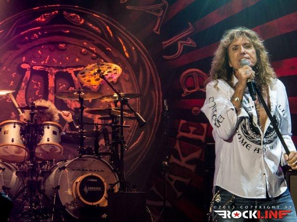 Tik preden je na oder prikorakala četica 'belih kač' pod vodstvom njihovega vse bolj razbrazdanega, a še vedno brezsramno neukrotljivega pevskega šarmerja Davida Coverdala, se je dvorana že zaznavno bolj zapolnila v pričakovanju prve izmed dveh glavnih atrakcij tega koncertnega večera. Whitesnake so bili napovedani kot nosilci prvega dne festivala, vendar so se tik pred zdajci v vrstnem redu zamenjali z Journey, kar je osrečilo vse tiste, ki so prišli na festival z glavnim namenom, da bi uresničili svoje melodično rockovske koncertne sanje. Kultni trdi rockerji, kar Whitesnake, kljub številnim rošadam zasedb še vedno so, imajo seveda trume zvestih koncertnih pristašev, katerih prav nič ne moti dejstvo, da je Coverdaleov vokal že precej hudo načet. To se je vnovič nazorno slišalo že ob začetku uvodnega zimzelena »Give Me All Your Love«. Slednjega so bili marsikateri veseli, da so ga lahko po dolgem času vnovič slišali med seznamom izvedb. Legendarni pevec je nerodno dejstvo, da njegov vokal že dolgo ni več tisto kar je bil nekoč, dokaj uspešno kompenziral s pomočjo spremljevalnih vokalov v režiji obeh dolgoletnih kitaristov, Douga Aldricha in Reba Beacha, katera sta v nadaljevanju večera ljubitelje kitarske virtuoznosti osrečila predvsem s številnimi improvizacijskimi dueti.
